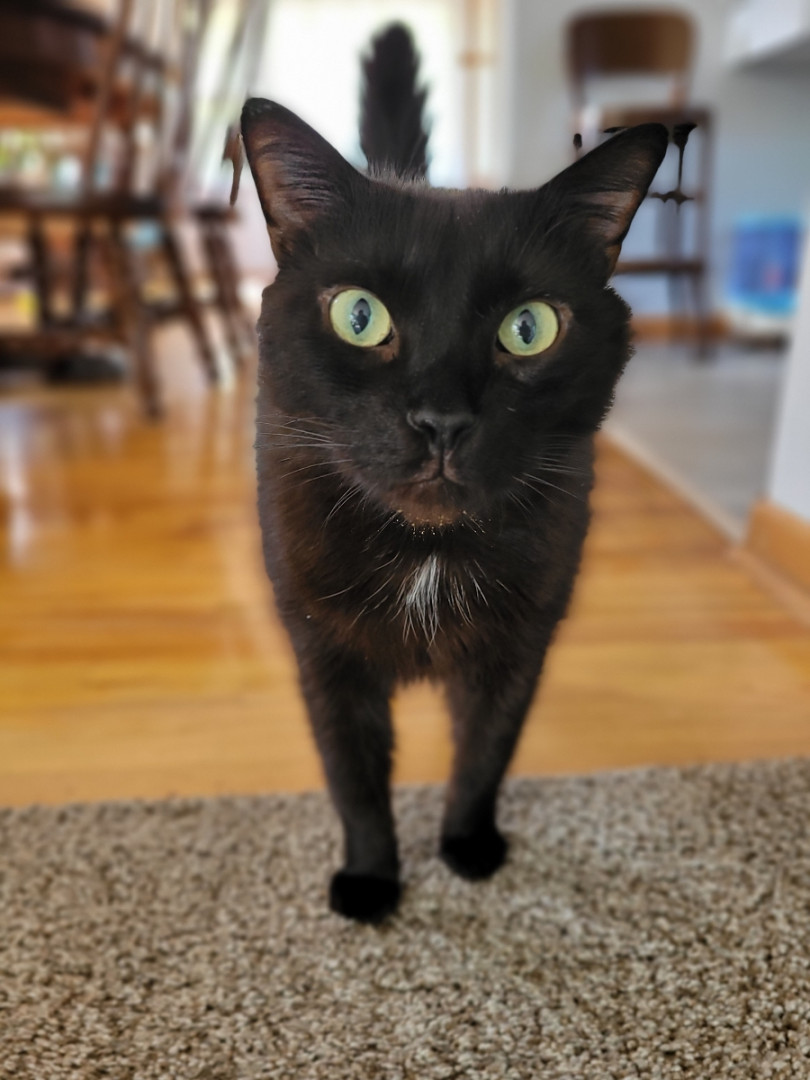 He’s very dog-like. Follows his mama everywhere; room to room to room. Just wants to be near his person. Never on them. On the rare occasion he meows…he either sounds like a grandpa with a raspy voice or a tiny kitten. You never know what you’re going to get.