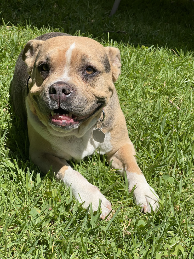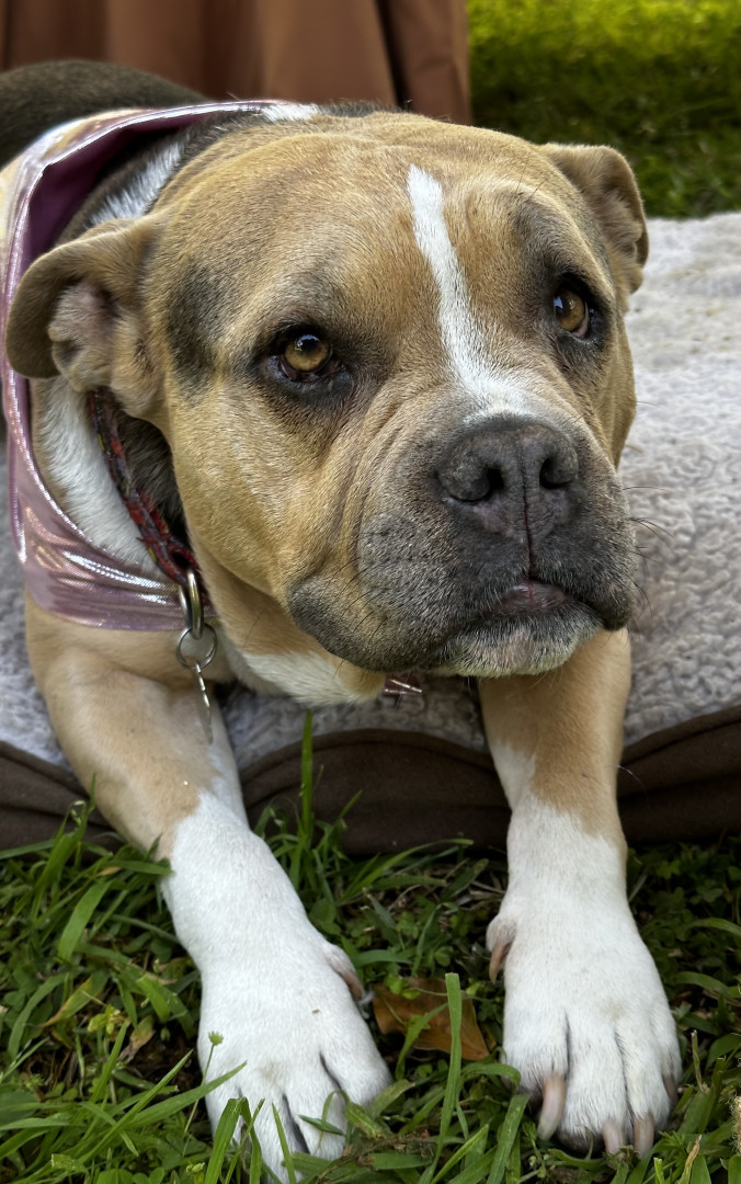 Riley is a 9 yo American Bully. She is the kindest soul, and survived the Eaton Fire along with all but one of my therapy horses Jan. TY