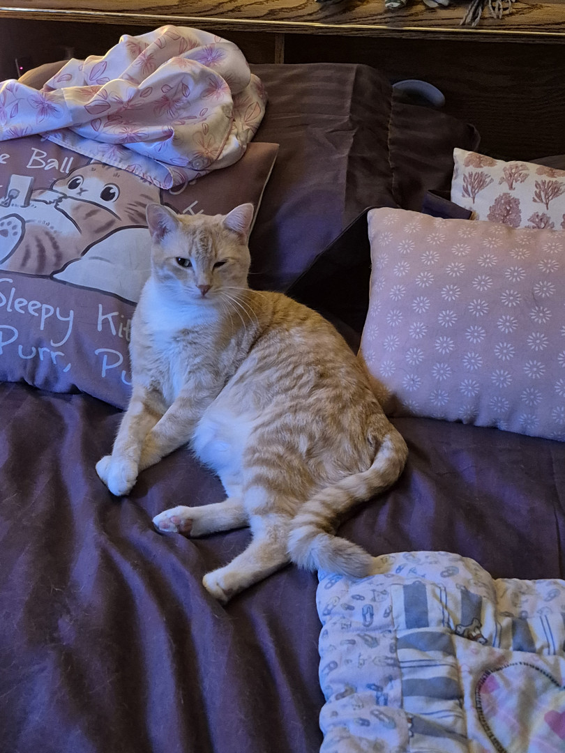 Rip is typical yellow cat, finding anything that he can get into to cause trouble or cause whatever he got to go missing. Since I have a