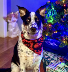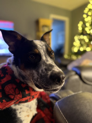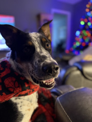 River is a year old Texas Heeler. He is very intelligent and loves to learn. He’s a talker. Favorite thing to do is FRISBEE!!