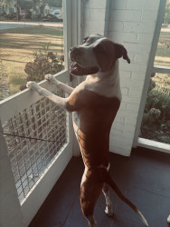 River Rose is Staffordshire terrier, a very social butterfly. Loves people, wants to meet and greet all. A pleasure to have.