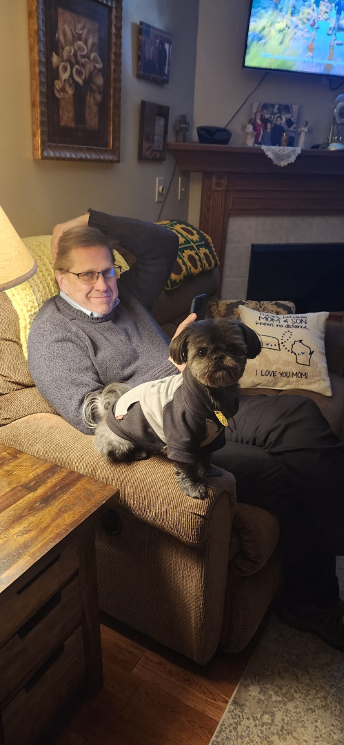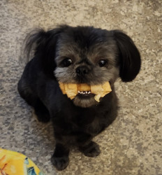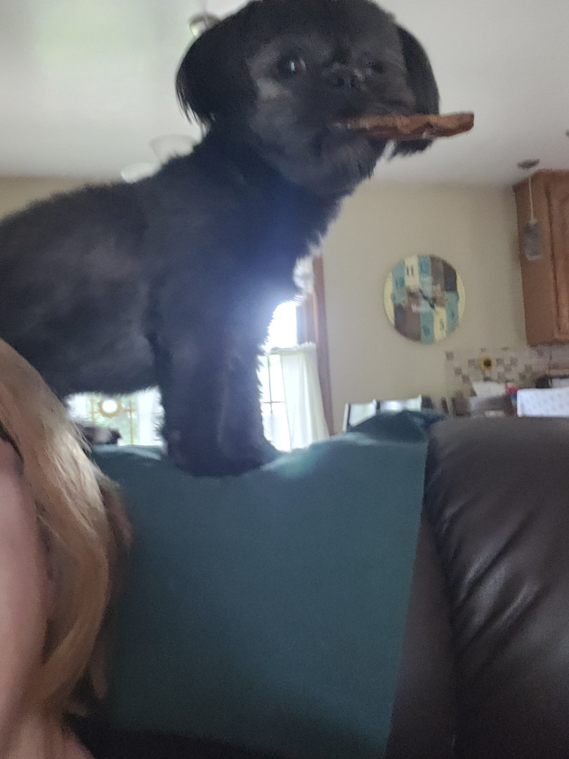 RIZZO almost always wants to be on someone's lap with a treat or one of his "babies" (stuffed lamb or moose). My grandsons: "The Rizzler"