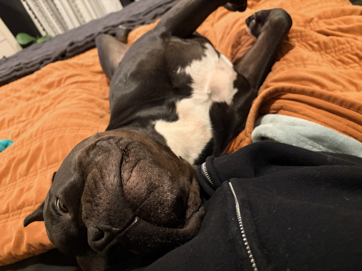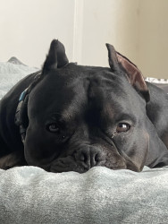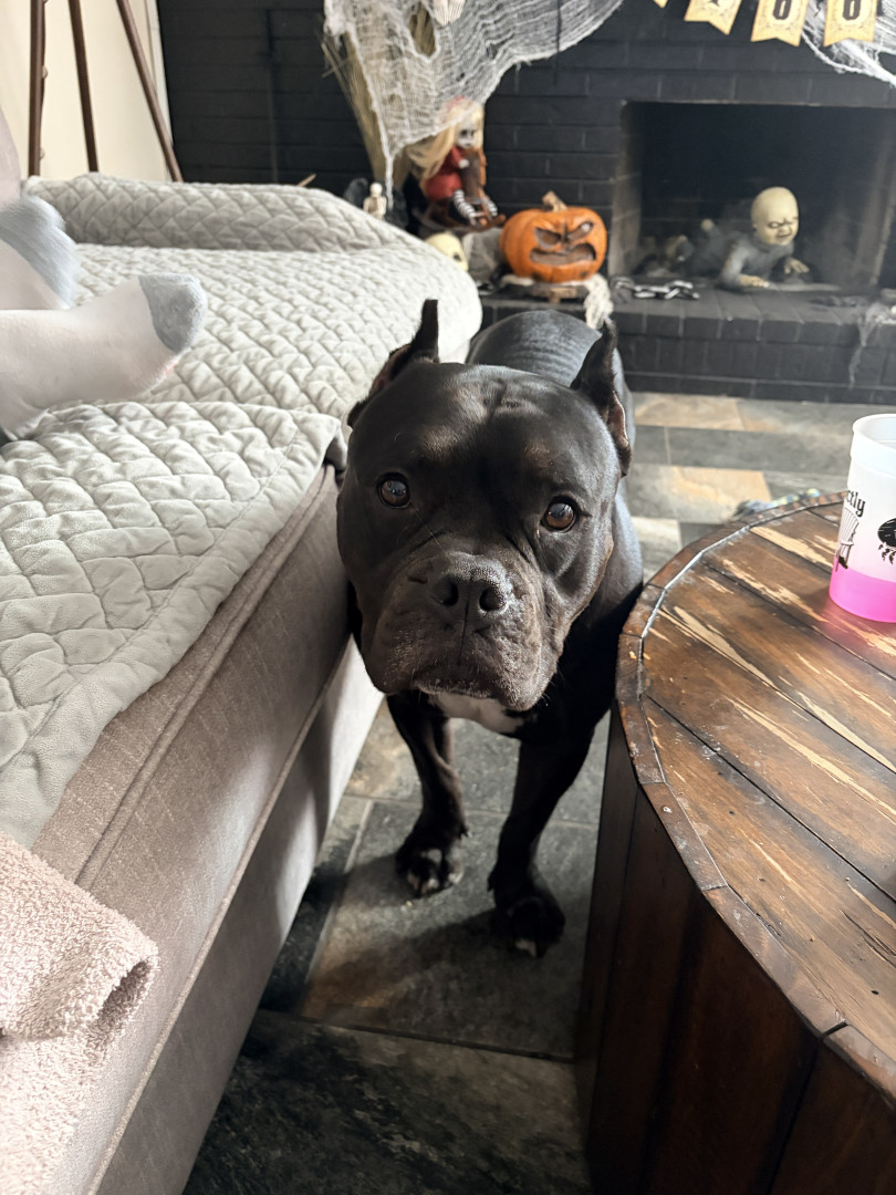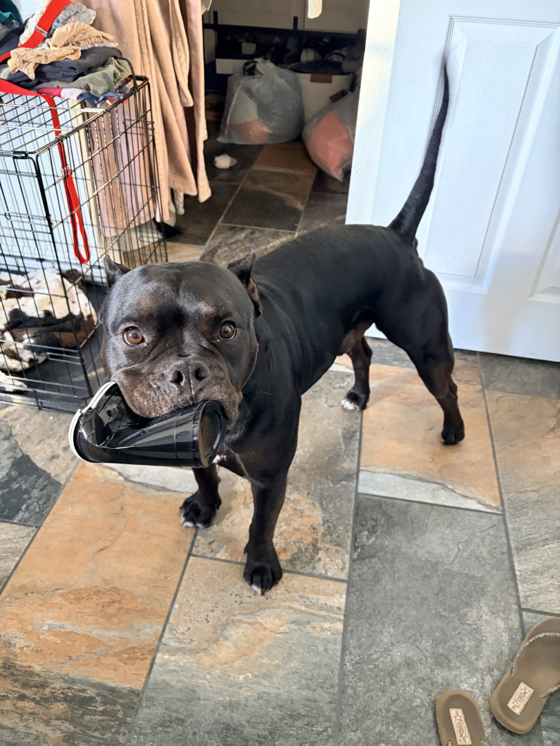 He is a character! Adopted when he was 6 months old. Extremely hyper. Very mischievous. Total cuddle bug. Loves to play keep away.