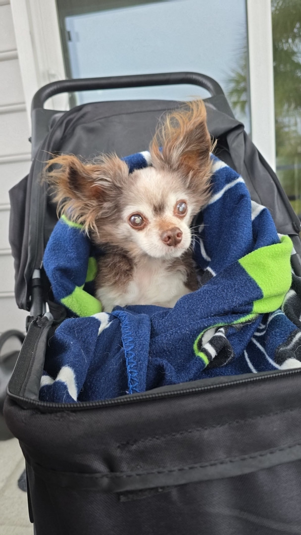Rocco is a 17y/o long-haired chihuahua. He is blind and almost completely deaf but he has alot of spunk for an old man! He is my heart ❤️