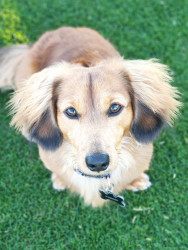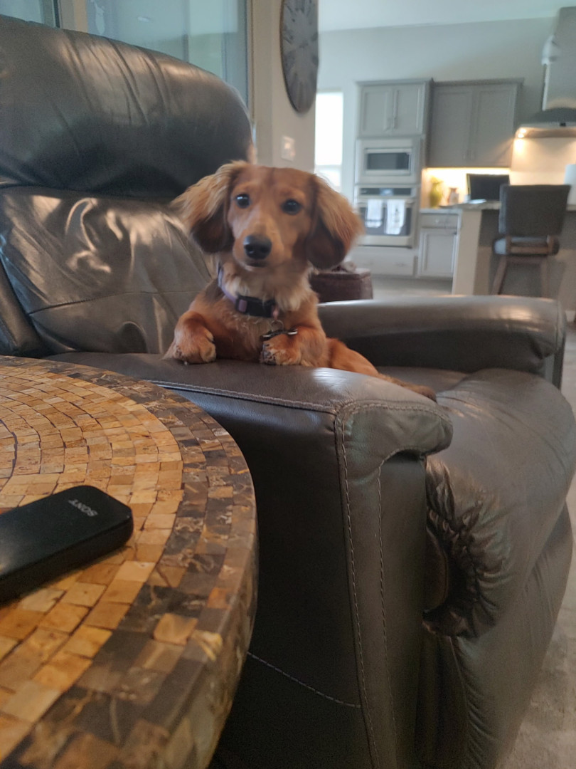 Rocco is our mini long hair Dachshund ...He's 1 yo and has an amazing personality and loves to entertain and make people happy.