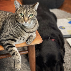 Rocket was born on a farm along the California Delta. He was feral from birth until I adopted him one year later. He’s so unique and loving.