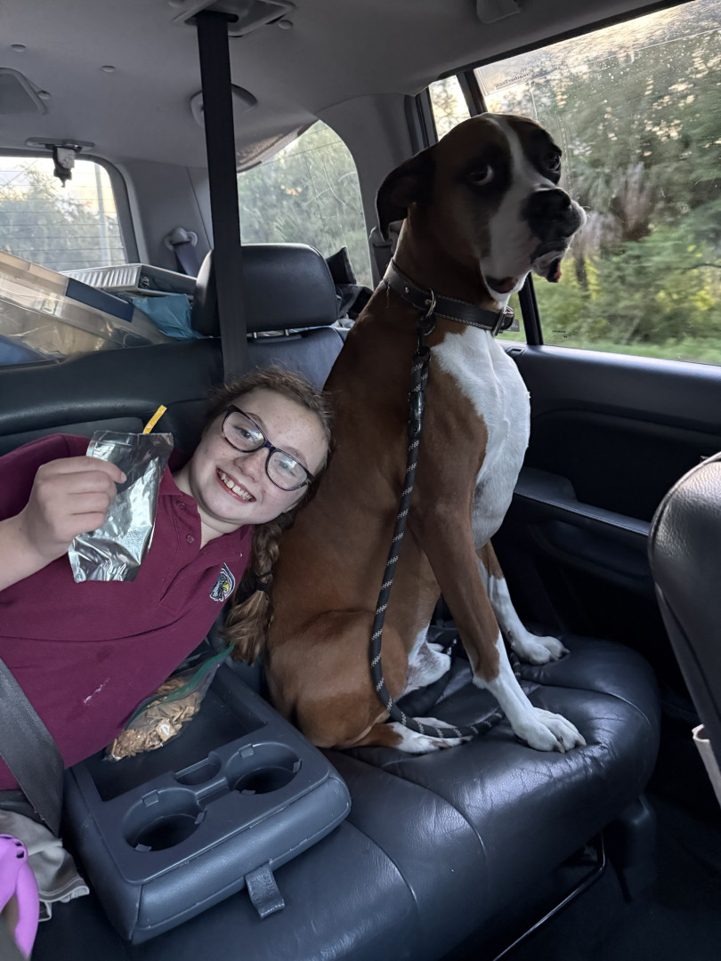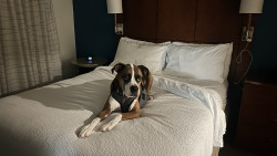 Rocky is loving and curious. He understands what you are saying to him as he tilts his head while in conversation. He loves rides, pup cups,