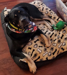 Learn MoreRocky has a sloth and will not let his other siblings touch it. His favorite treats are those dam milk bones lol