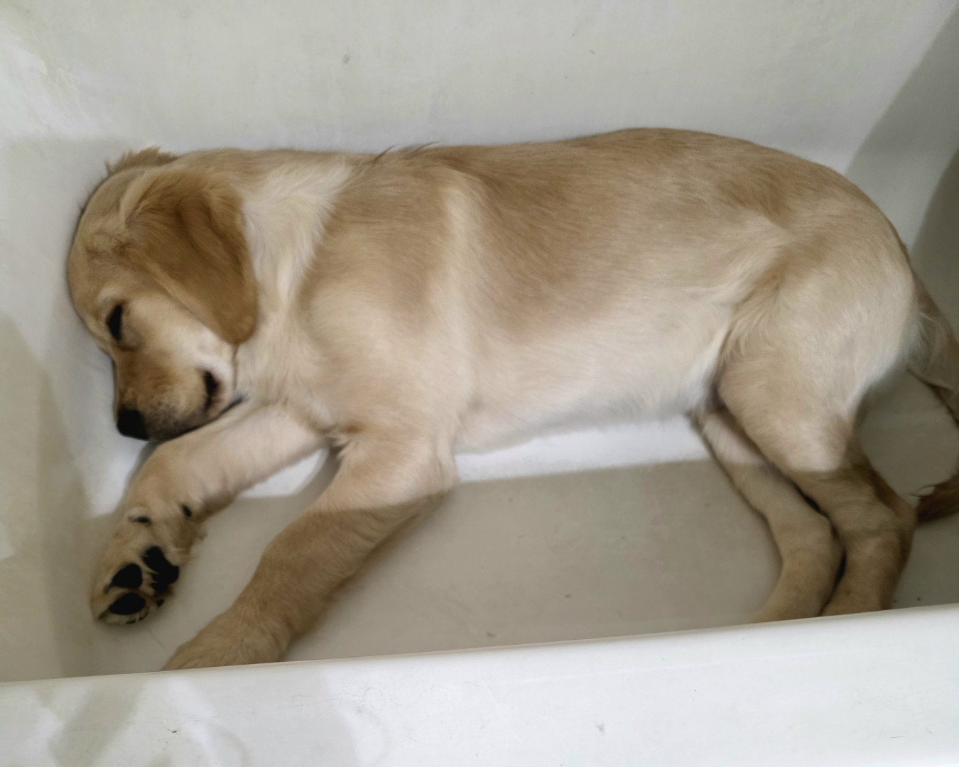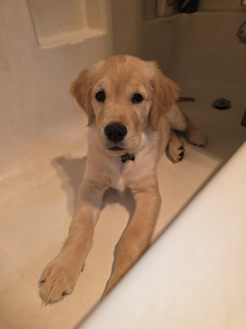 Rocky, Is a 5 month old golden retriever, full of energy and personality. A good boy with mischievous tendencies.