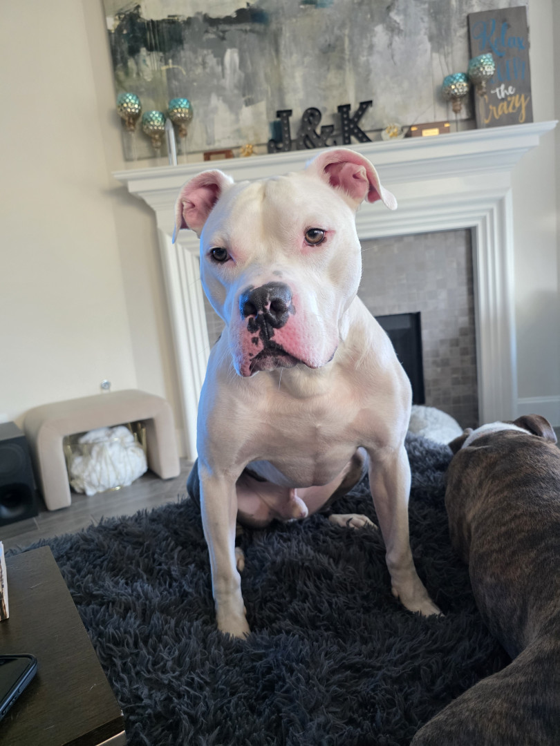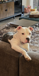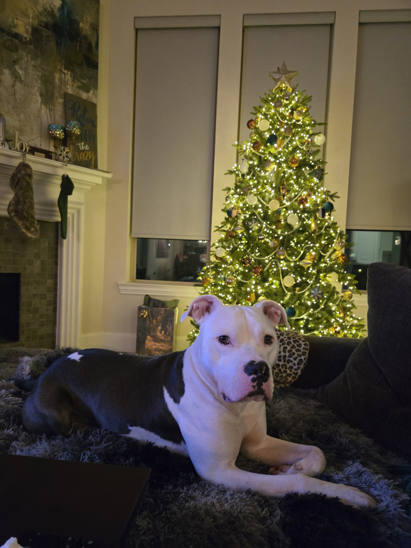 Romeo had a rough beginning, he was found by a local rescue roaming the streets of Houston. We rescued him after losing one of our dogs. He lives a great life now, enjoying life,being spoiled, and very much loved.