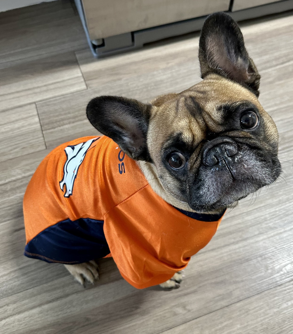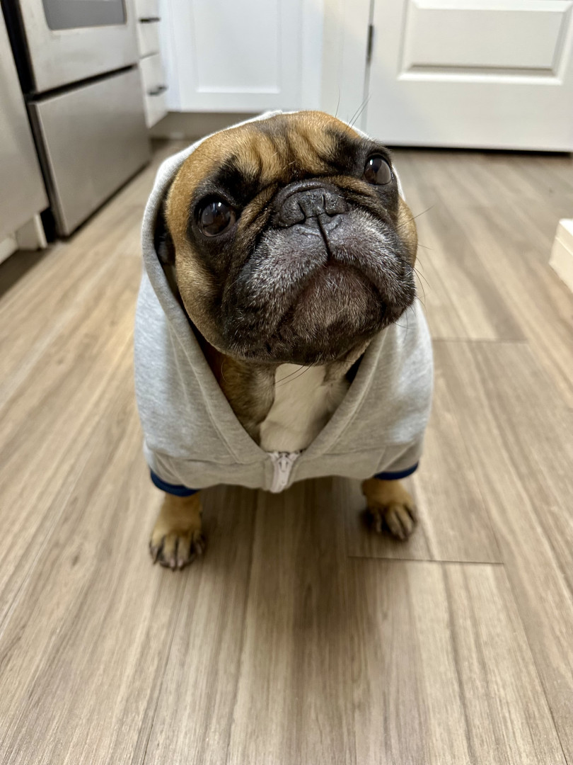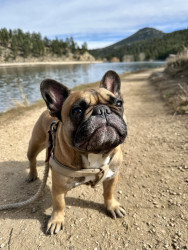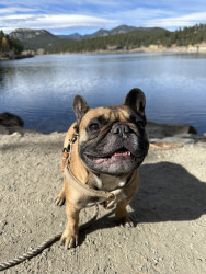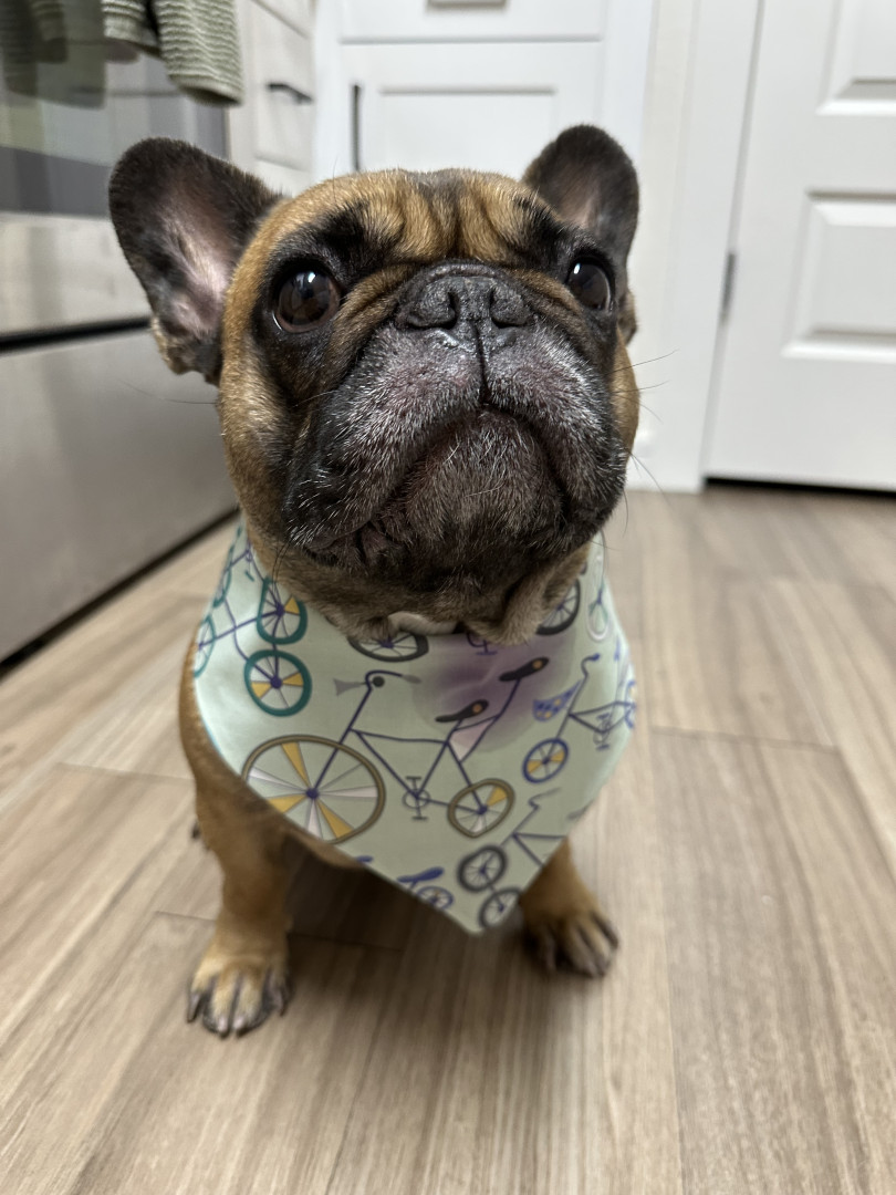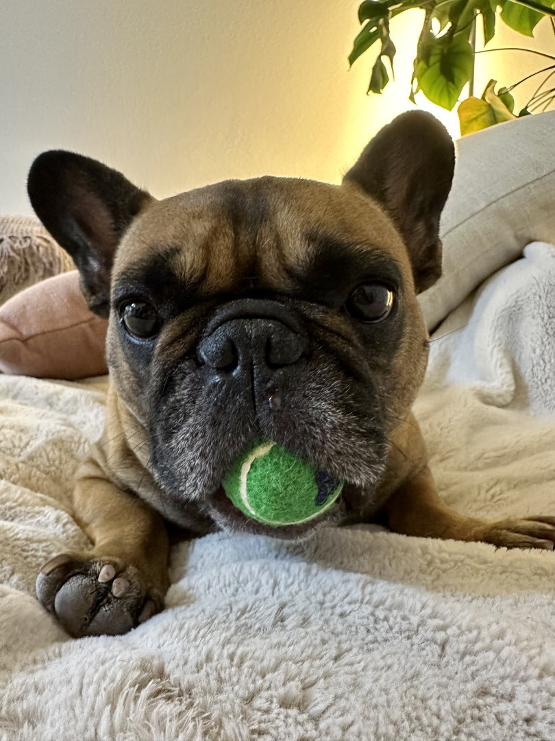 Romeo is a goofy frenchie who adores everyone, lives for naps with his mom, and believes snorting is a love language