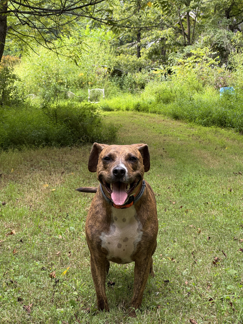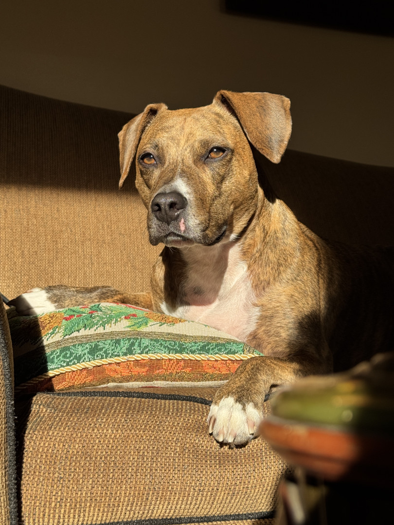 Romy is a loving little Pit bull terrier Beagle mix, lots of energy and has such a way of making faces and hypnotizing you with her eyes