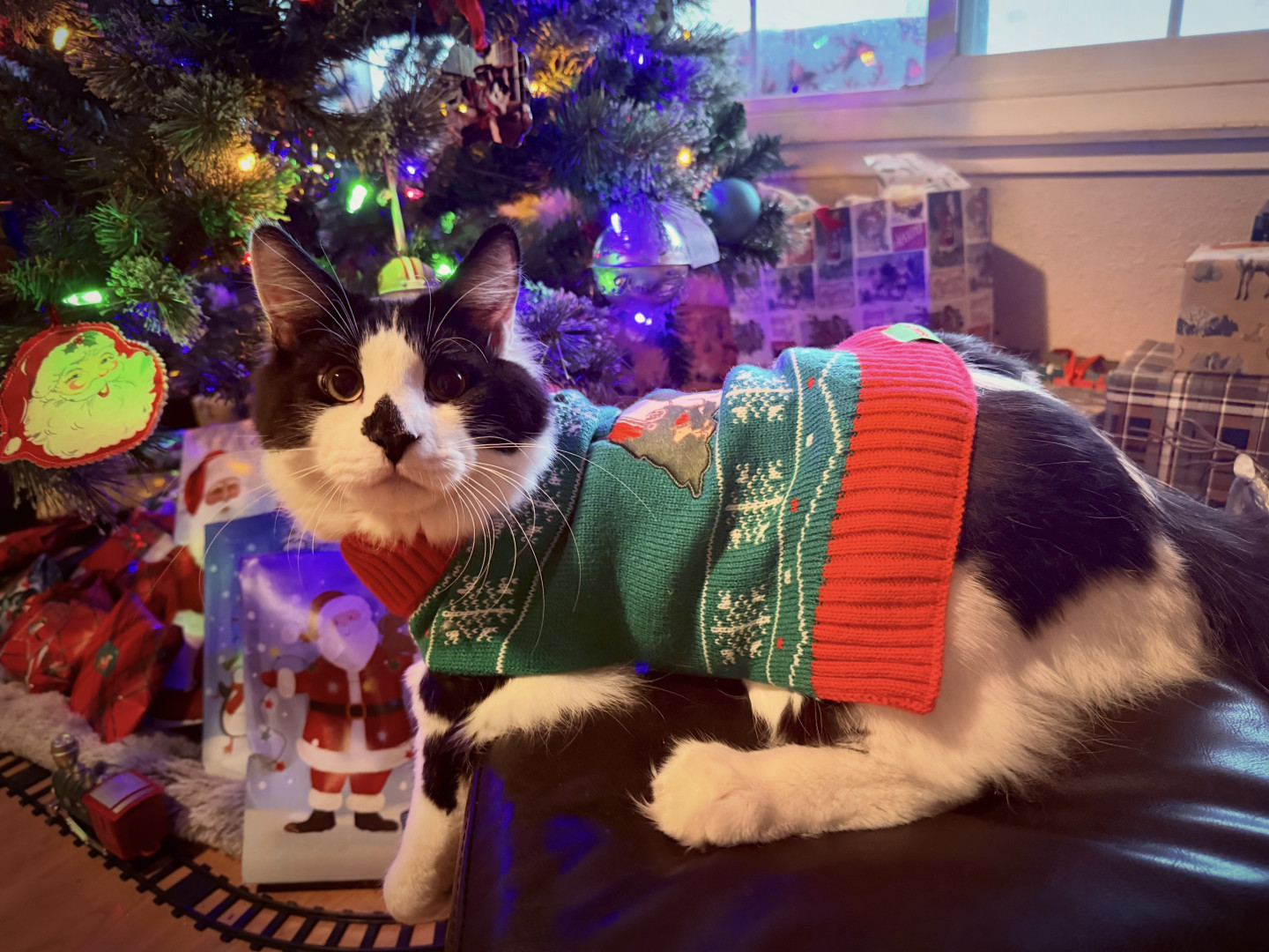Roo is a sweet spunky cat! He loves to play and dress up. He was born with a defect in his front legs but it doesn’t slow him down.