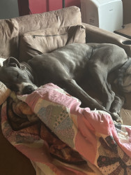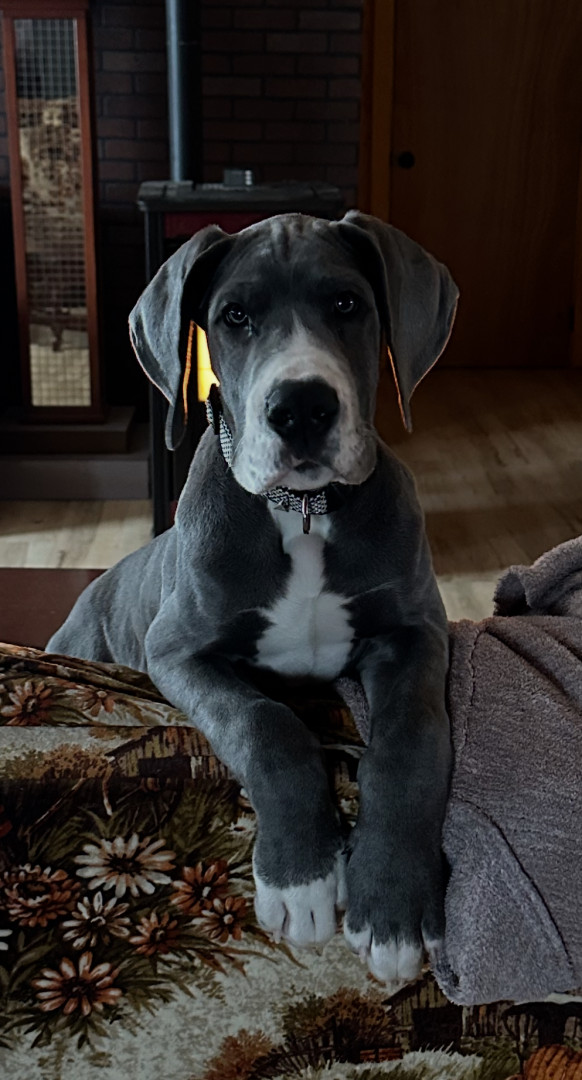He’s a Great Dane, he’s goofy, clumsy, playful, very smart, loves his toys and loves to cuddle. He’s my protector. He’s my everything.