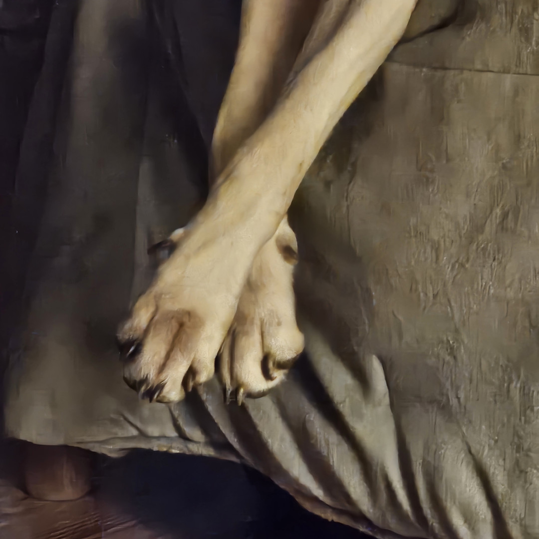 Size and color, he sticks out everywhere like a polar bear...lol. He is a super friendly giant puppy like a polar bear. Rooster has this majestic quality about him. He doesn't act like royalty, however, he somehow just carries himself like he is...lol