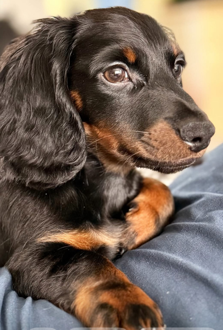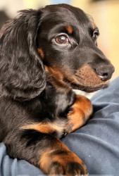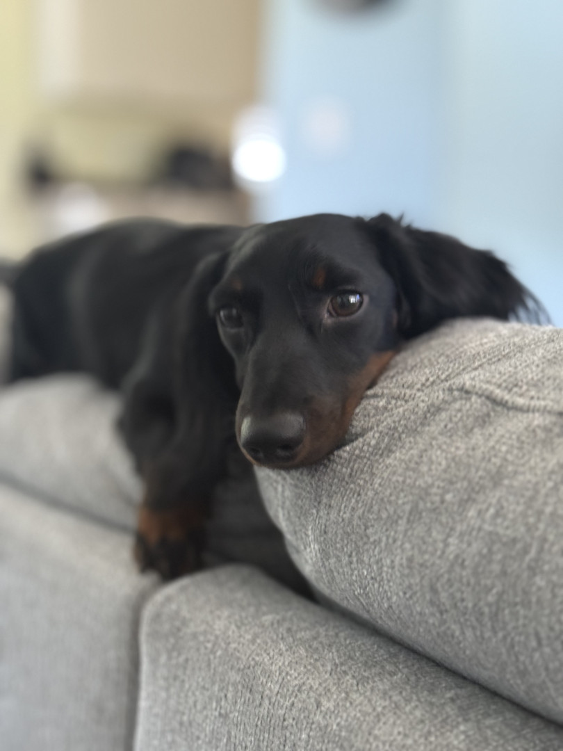 I think Roscoe’s most unique quality is that he can wake up at 3 AM and just have a ball by himself, or when he is exciting he likes to howl but I have another one when he’s hungry and he pushes his bowl around the kitchen. Definitely his best quality. Roscoe is a one-year-old puppy he’s one of the three of my dachshunds, he has a best friend and they love each other to death , One of his favorite and nicest most annoying thing to do is lick his sister‘s ears wet