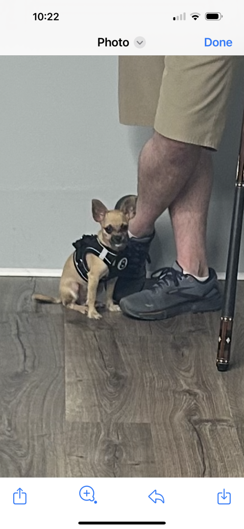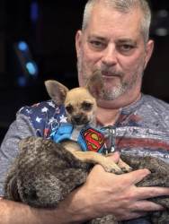 Roscoe is cute and goes everywhere with me and everyone is drawn to him. He is loved by hundreds of people that go out of their way to come over to us and pet or hold him.