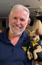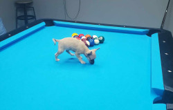 Roscoe loves everyone he meets and has met hundreds of people. Also, he hardly ever barks. He can jump like a kangaroo and climb like a cat. He loves car rides.