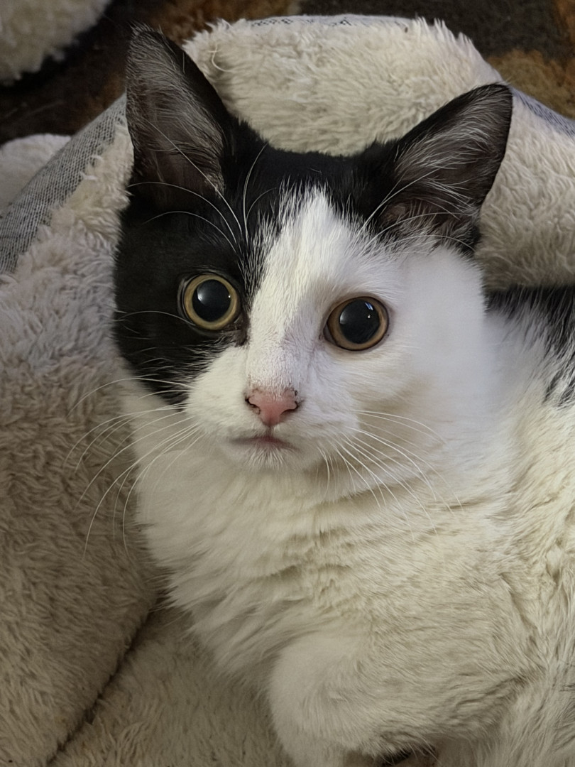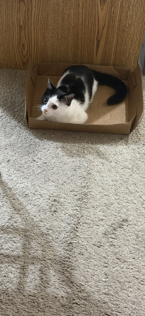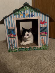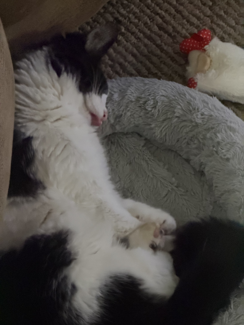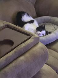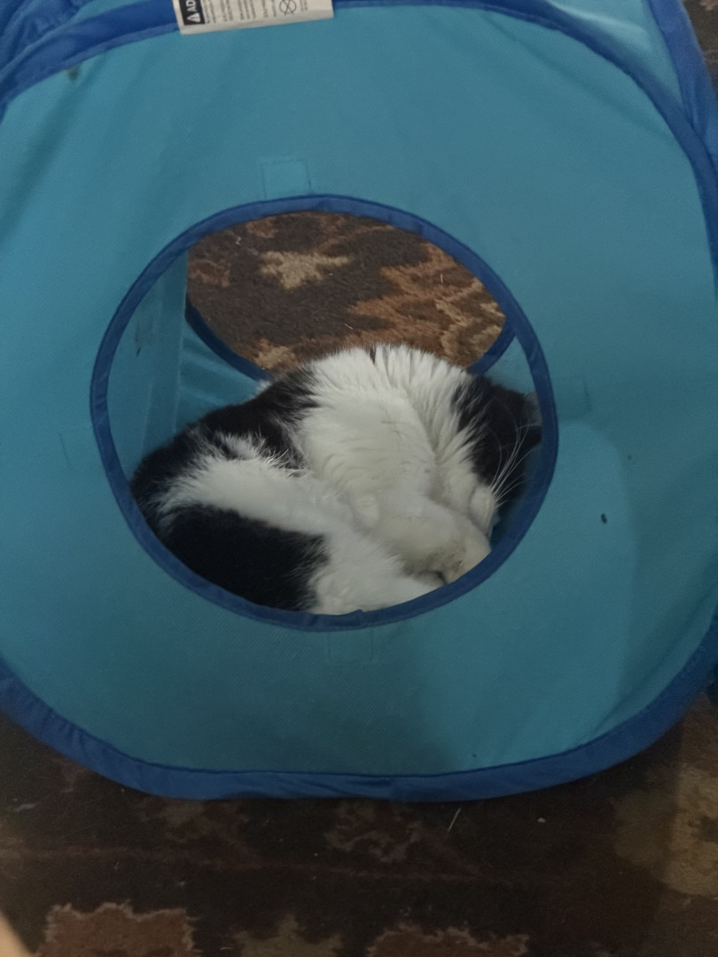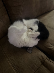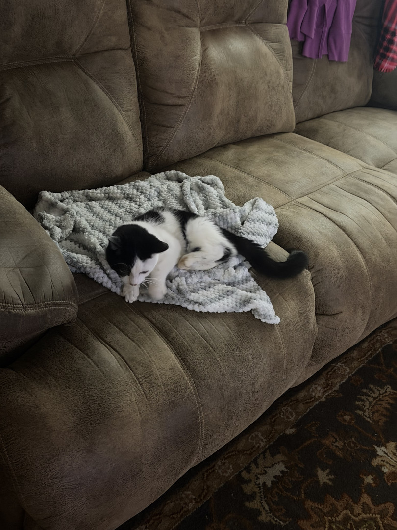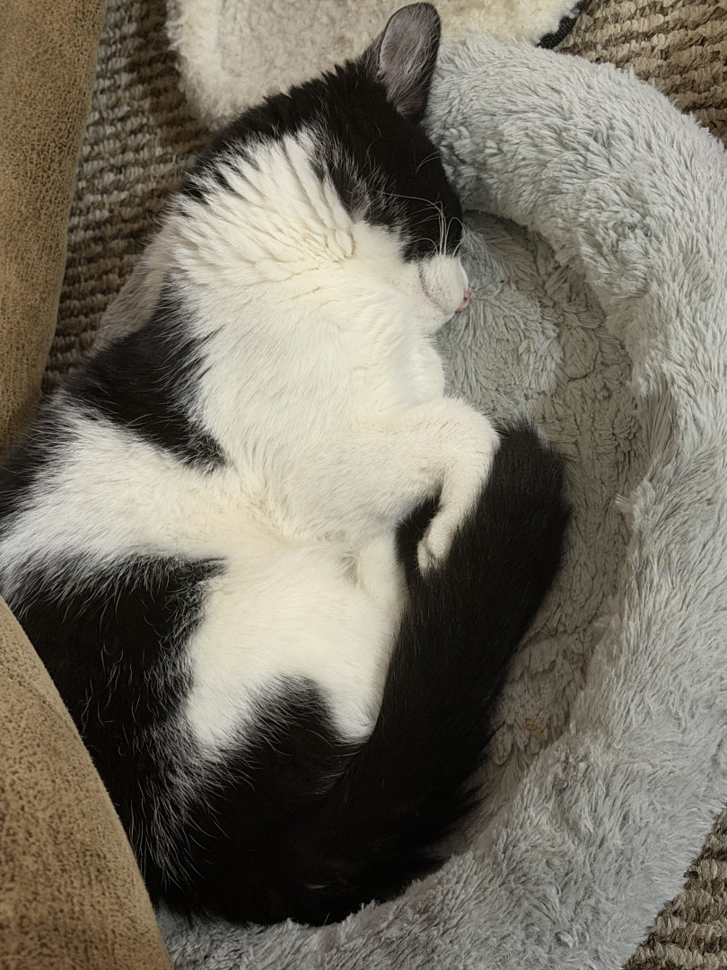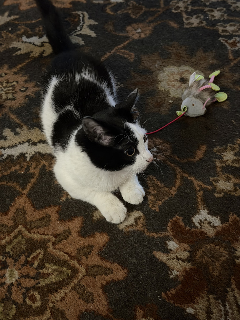 He was a 2 week old kitten I found with deformed bones and a bunch of problems and now he is a thriving almost 8 month old. Mommas Miracle.