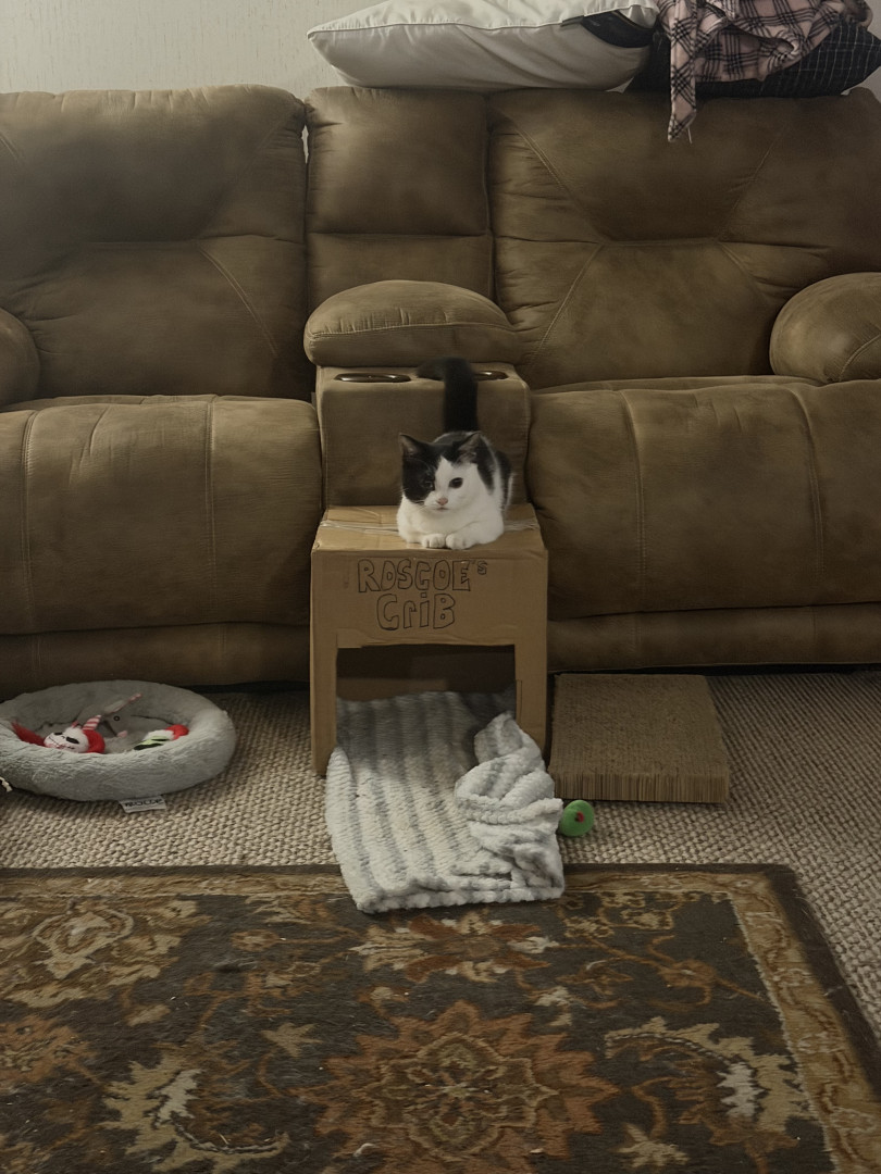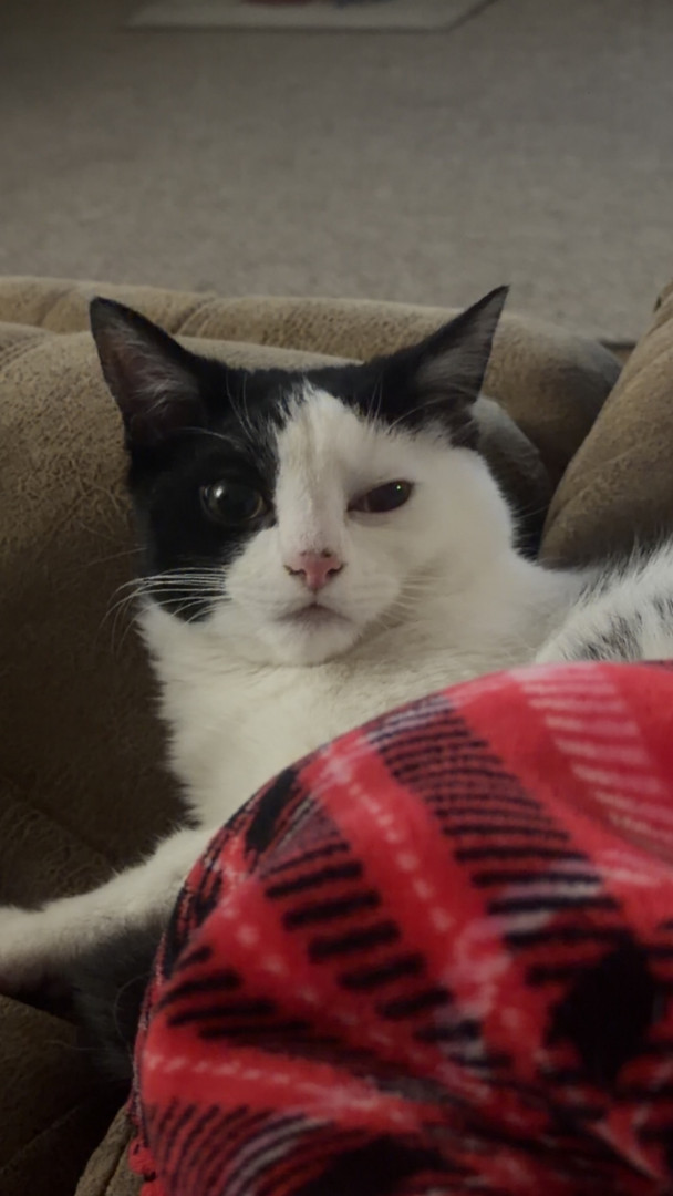 He should be America’s Favorite cat because he is so lovable. If you’re having a bad day look at him and he instantly makes you smile. He never meets a stranger, loves everyone. He even loves to chase his big sisters. Even when everyone told me he wouldn’t make it, I never gave up. He is a true Trooper that has defied all odds 😊