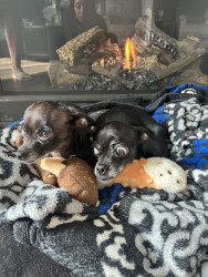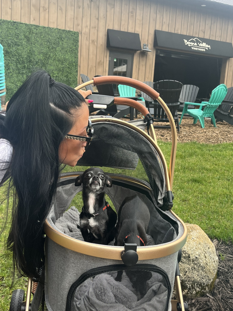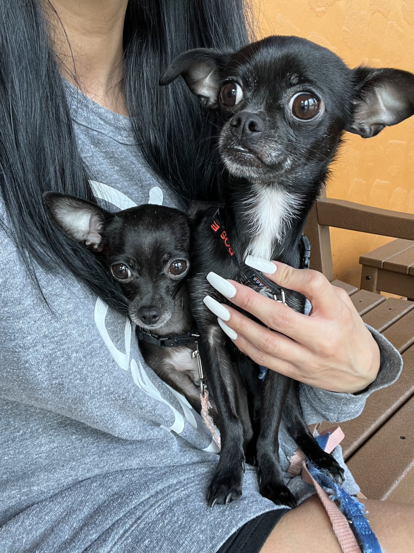 Rosie can go from wild zoomies to sweet snuggles in seconds—then lock eyes with you until she gets her way. It’s a talent. She also loves to chase her sister, Nahla Valentina, around the living room going 50 mph