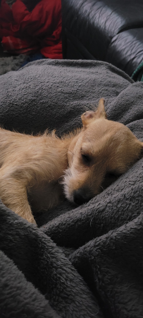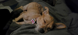8 month old terrier mix found abandoned in a bag near a lake. She now has a much better life. :)