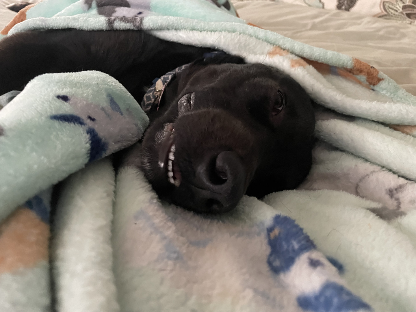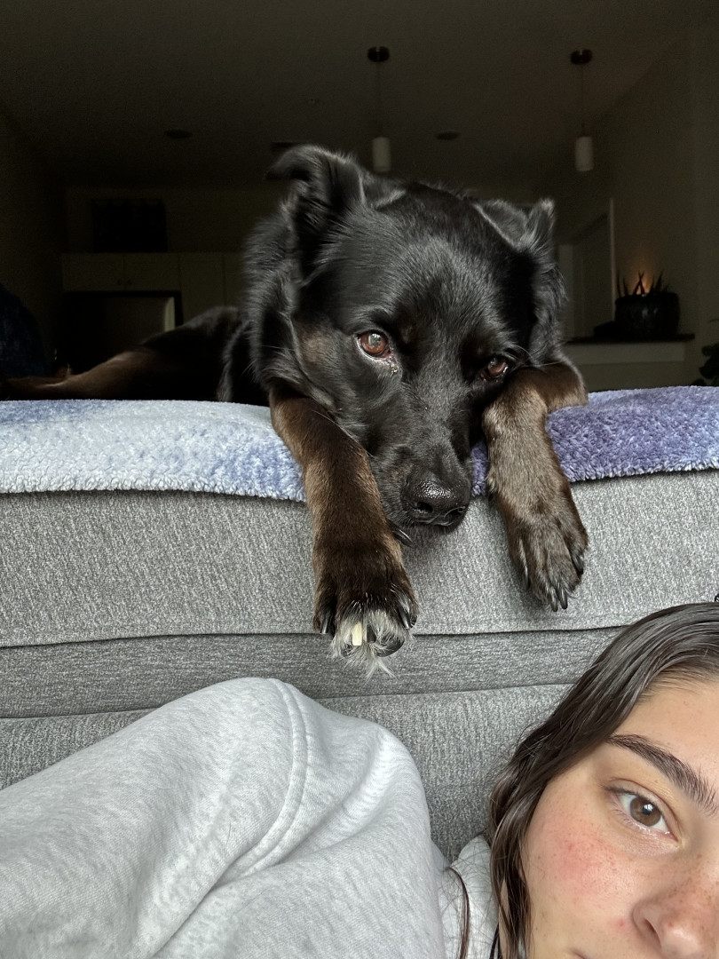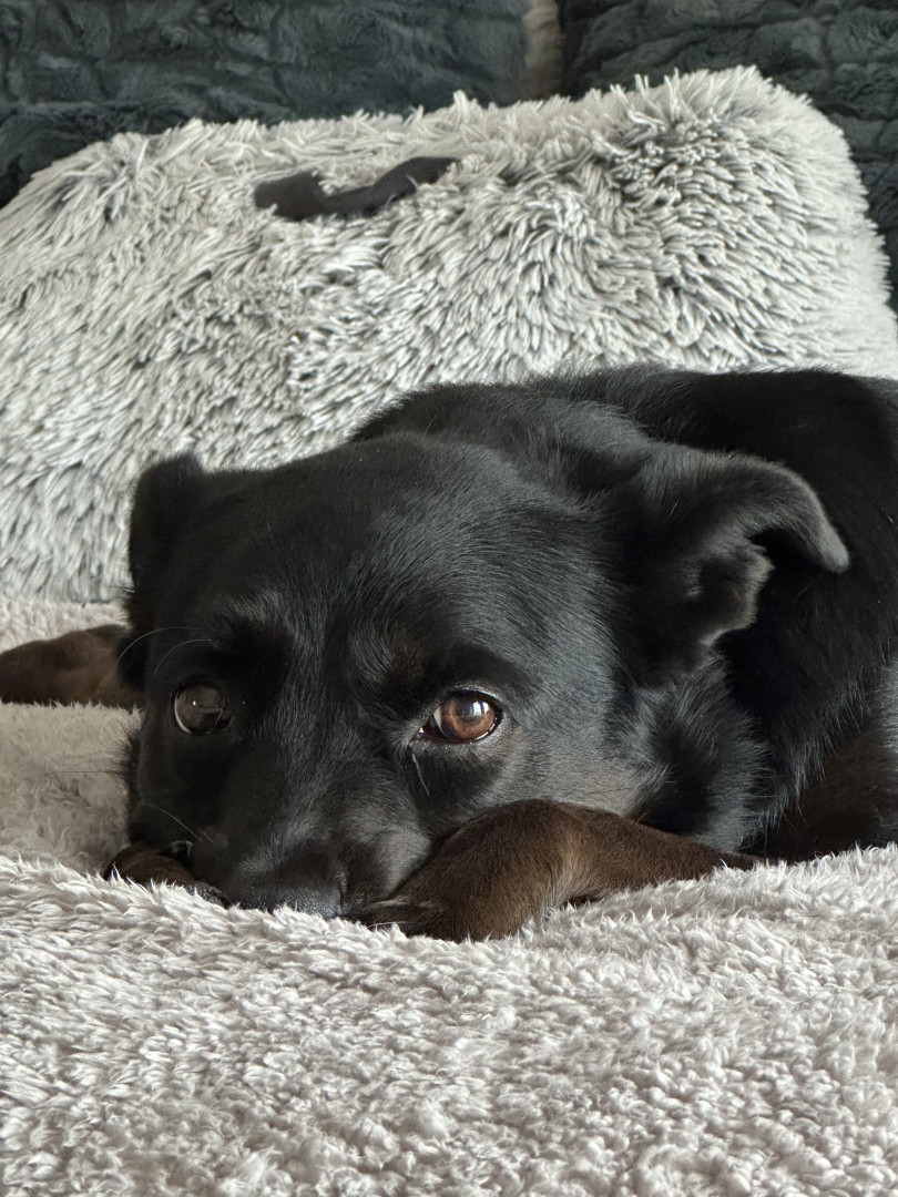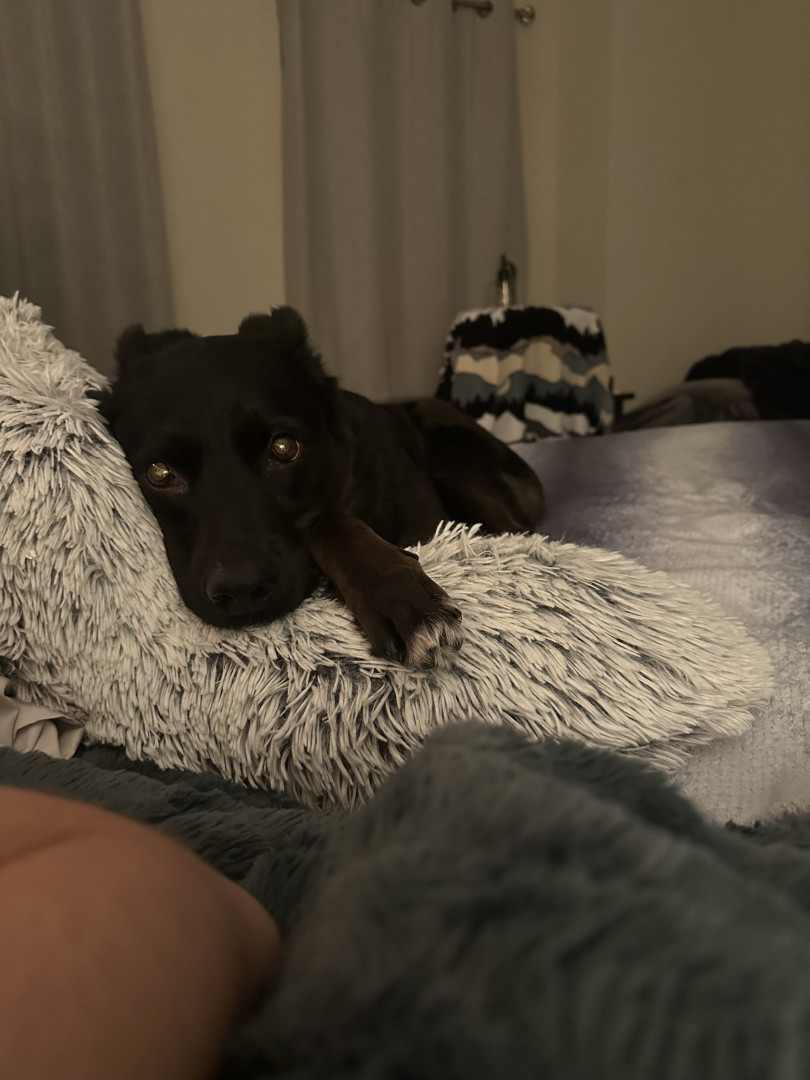 Rosie is a black lab/ Aussie who is bossy and full of energy. She is strong, making it through 2 CCL surgeries this past year!