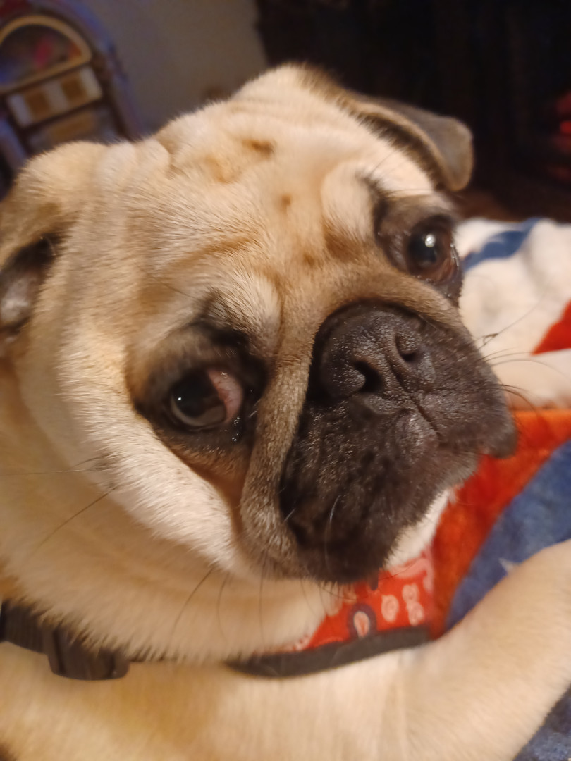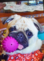 Very loving pup, loves to chew on paper and run around the house, loves other dogs and loves people! Loves to be fed and loves to kiss her s