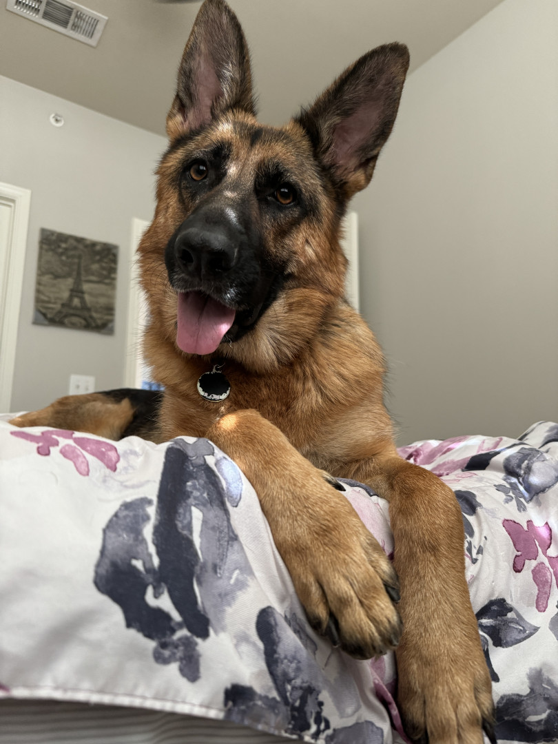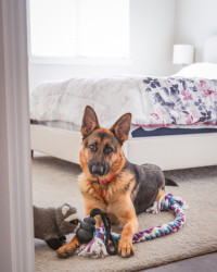 Rosie is a 3 year old German shepherd who is very Chuckit ball motivated and will never say no to salmon skins.