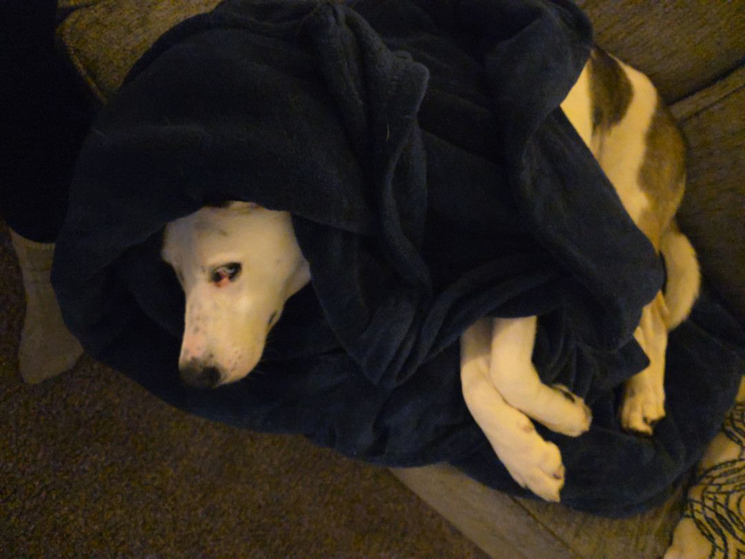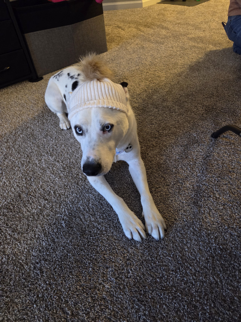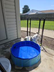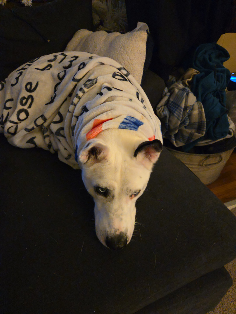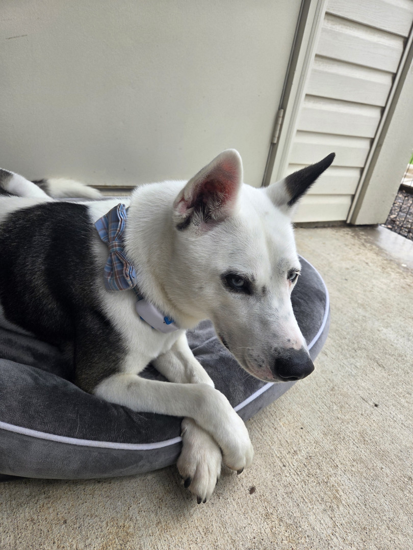 She is a sweet rescue that had a hard life. She is a very loving and funny girl. Rosie loves everyone and is always running to the next person for scratches. When Rosie gets excited she will hop around the house like a bunny rabbit, and will zoom all around. Rosie loves to play fetch, and when someone can't throw the ball for her she has learned to throw it in the air herself so she can chase it.