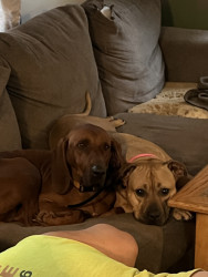 Rowdy lives up to his name! Loves a good run through the neighborhood while his mom begrudgingly chases him. Still, he is the Bestest Boy.