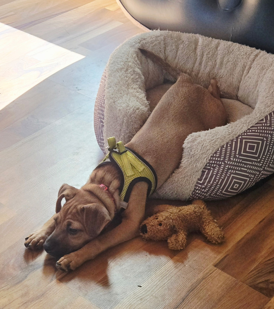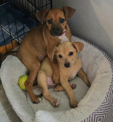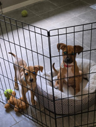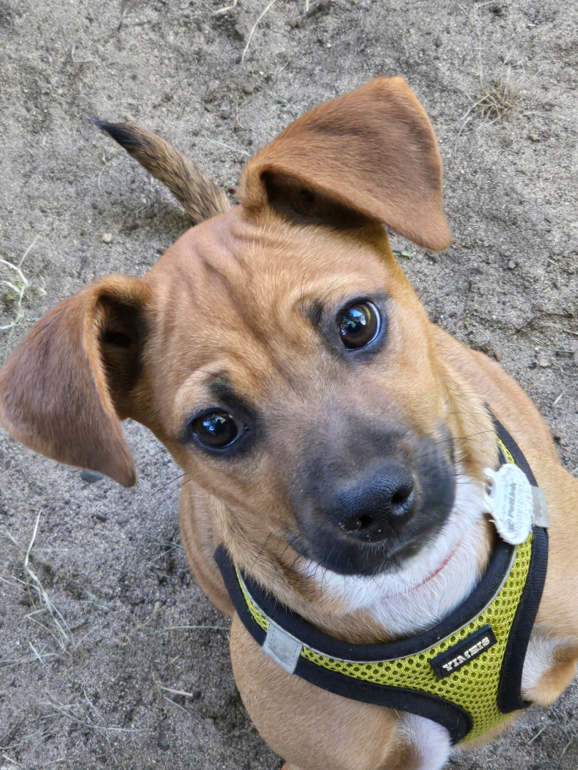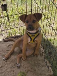 Learn MoreRowdy's favorite toy is dirt. He LOVES to dig! He's been helping to dig up a couple of tree stumps. Whatever he finds , whether it's a root or just a piece of grass , or a rock , it is his precious treasure. He runs off with his sister chasing after him for his spoils. His favorite go to treat is his food or anyone else's food.