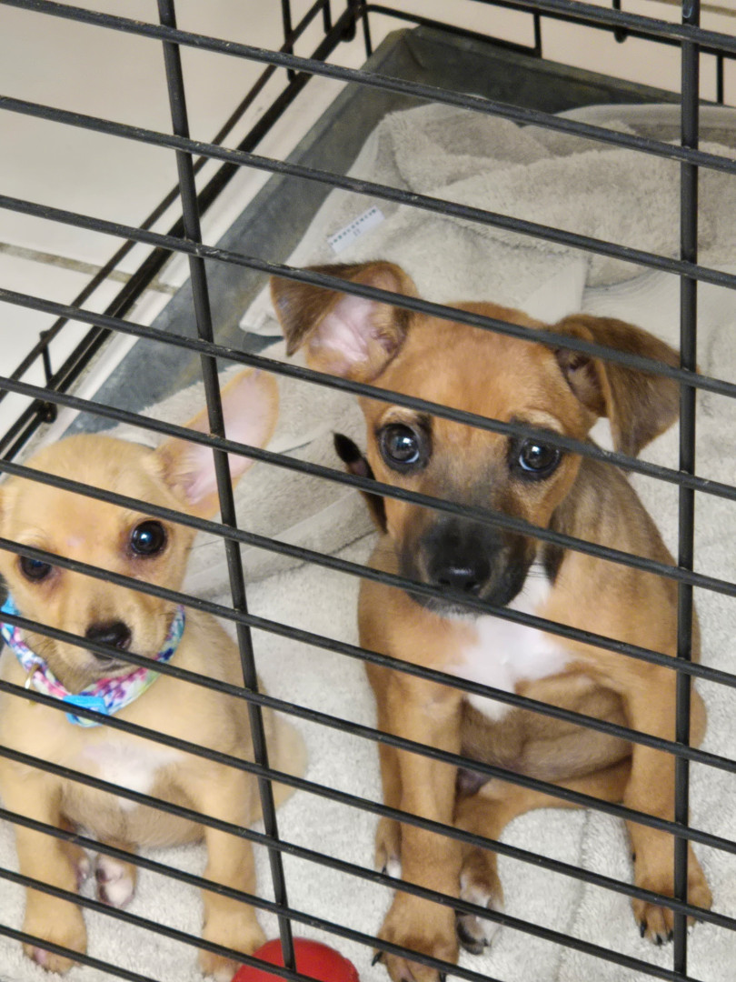Rowdy was protecting his sister Rainy out in stormy weather! He had tucked her into a bush on the side of a road, trying to keep her dry. When all of the sudden he saw a bright red truck coming and stepped out in front of it into the street. His sister followed. It's as if he knew the kind person in the truck would stop! She did! Rowdy saved himself and his sister. They weighed less than 3 lbs., covered in fleas, belly's full of worms and his sister being eaten alive with maggots. He's a hero