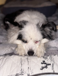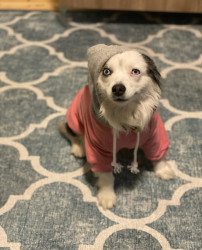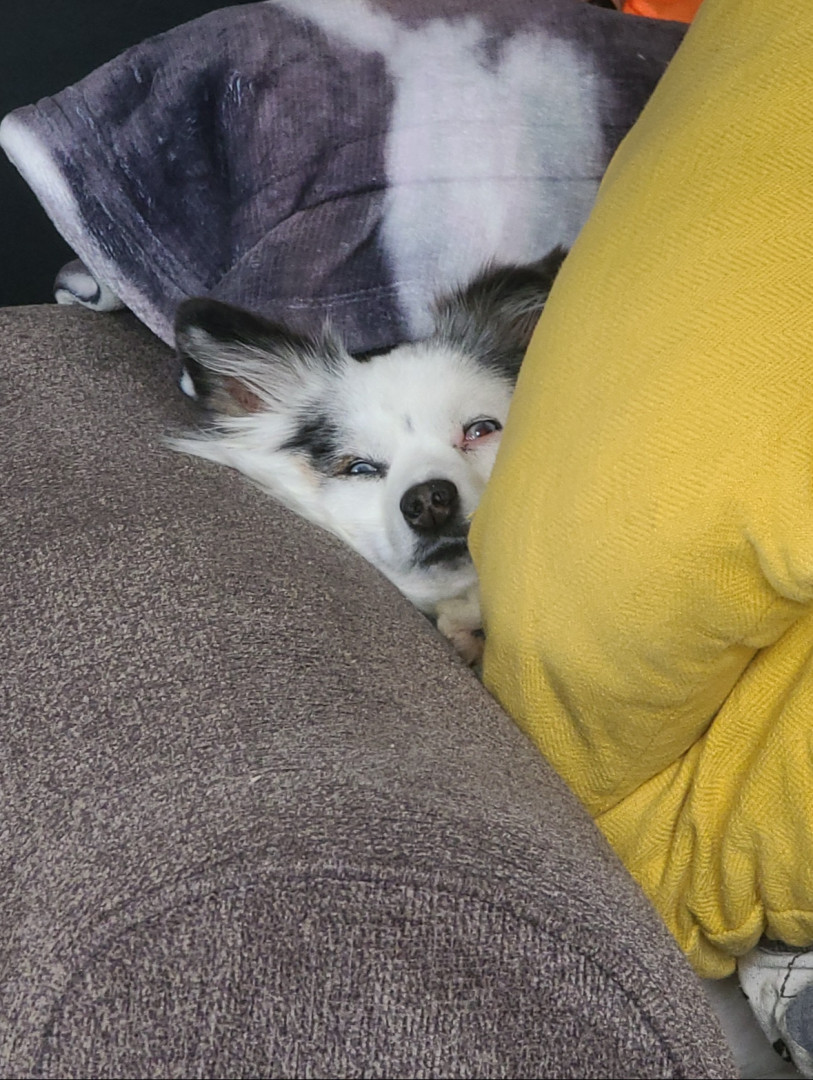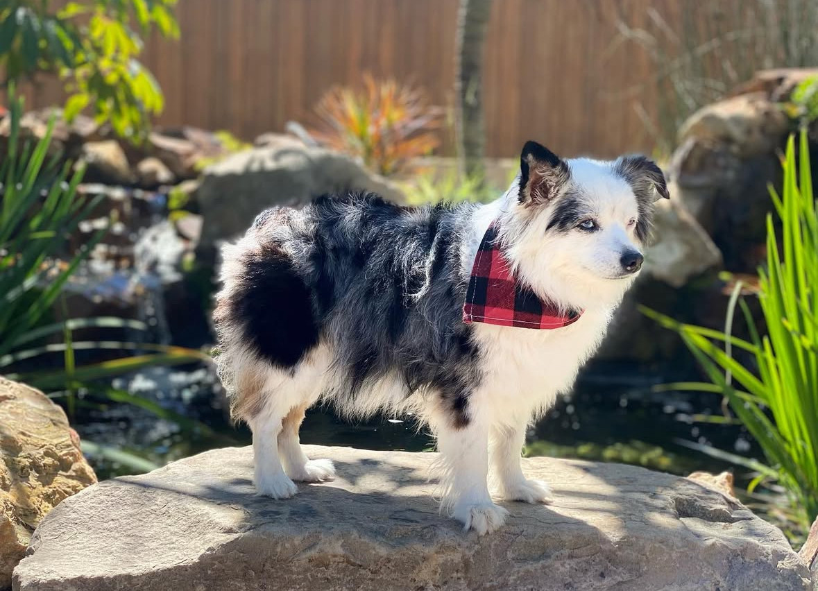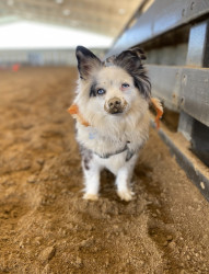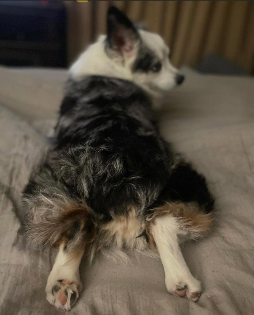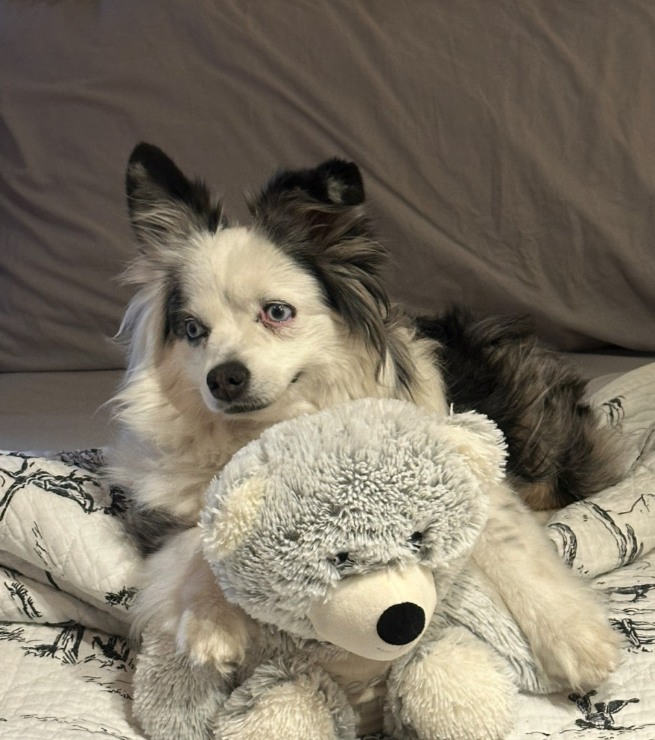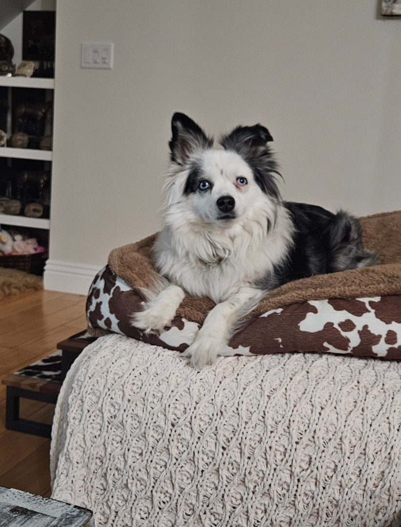 14-lb toy Aussie. Found me at 22. Now mid-30s, married with a newborn—still my constant. Ranch dog, baby guardian, best friend to cat & pig.