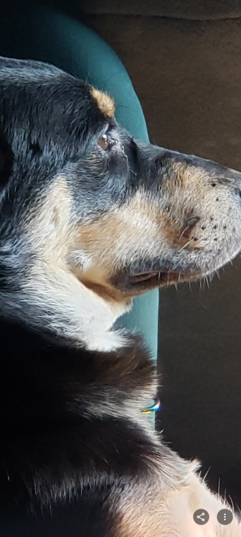 Her sweetest personality. She so silly, kinda wary of strangers being an abused rescue, but once she knows you she wants to lick your face off.