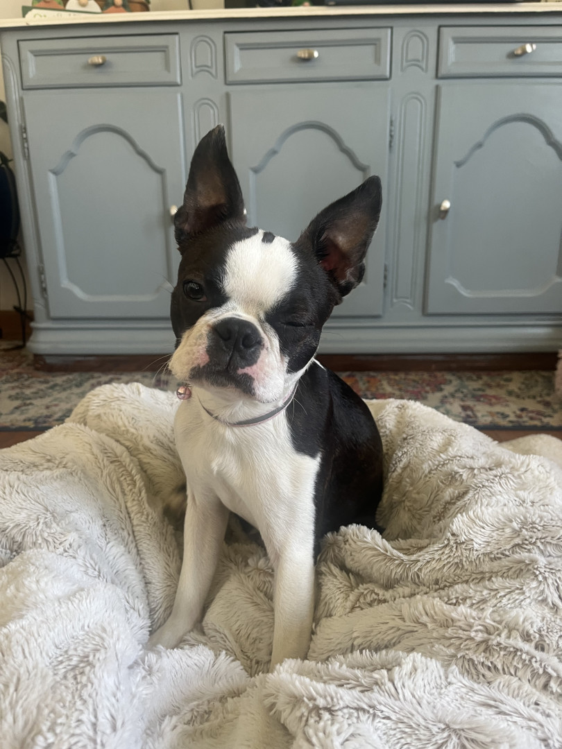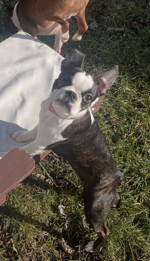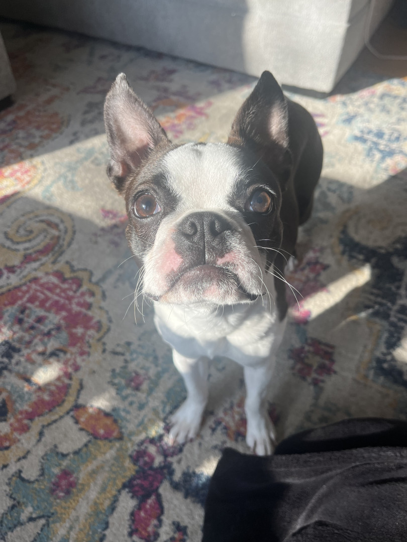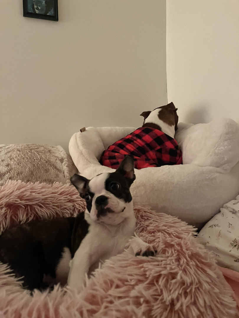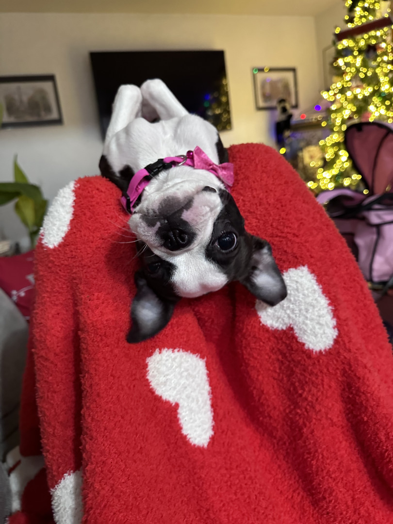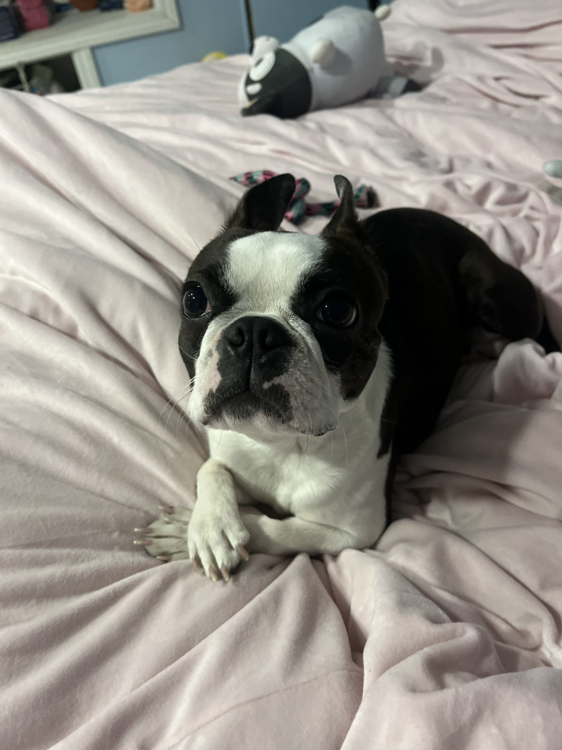 ruby is a deaf Boston terrier that loves to follow everyone like a shadow. Huge foodie, will do any trick for a treat. Biggest cuddler ever!