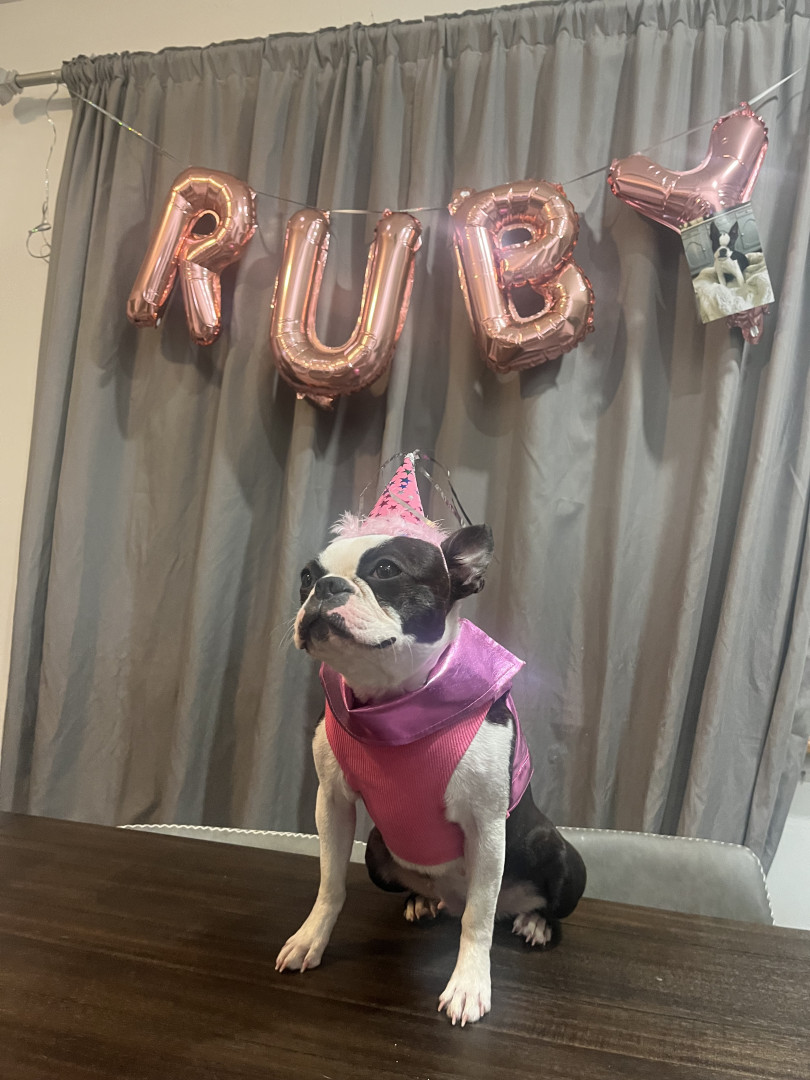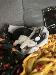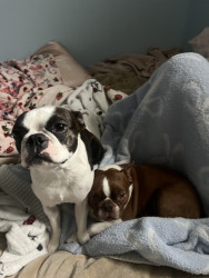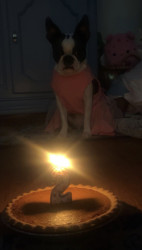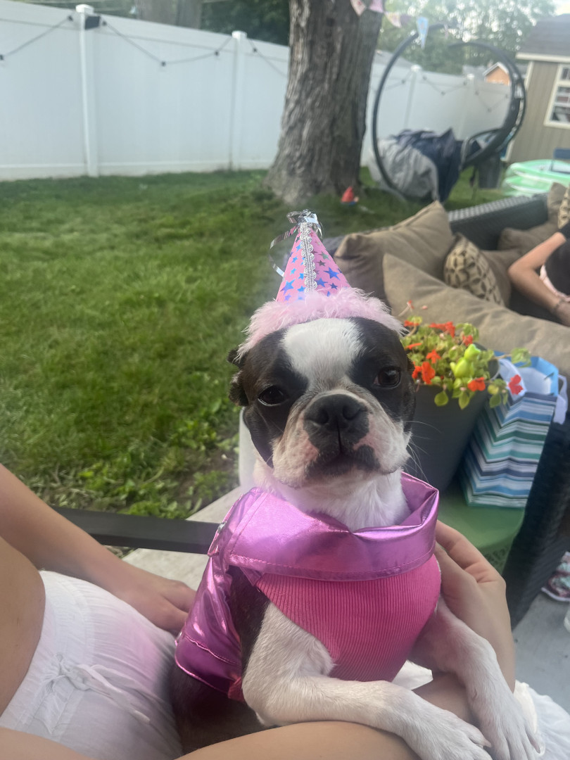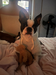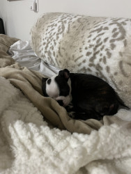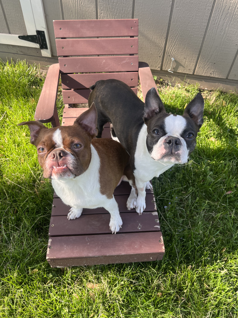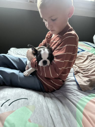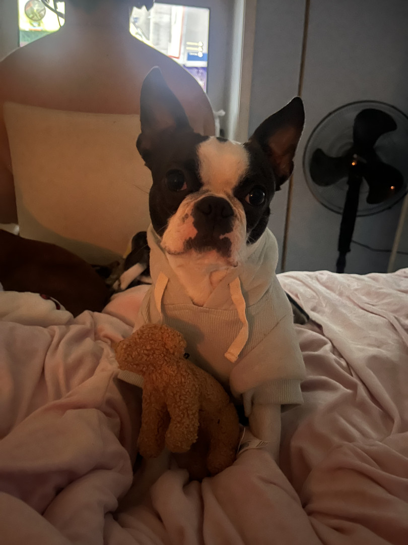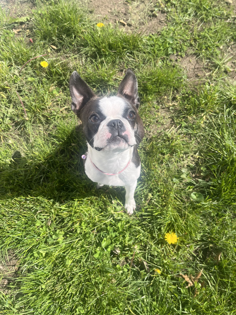 ruby is a deaf Boston terrier that loves to follow everyone like a shadow. Huge foodie, will do any trick for a treat. Biggest cuddler ever!