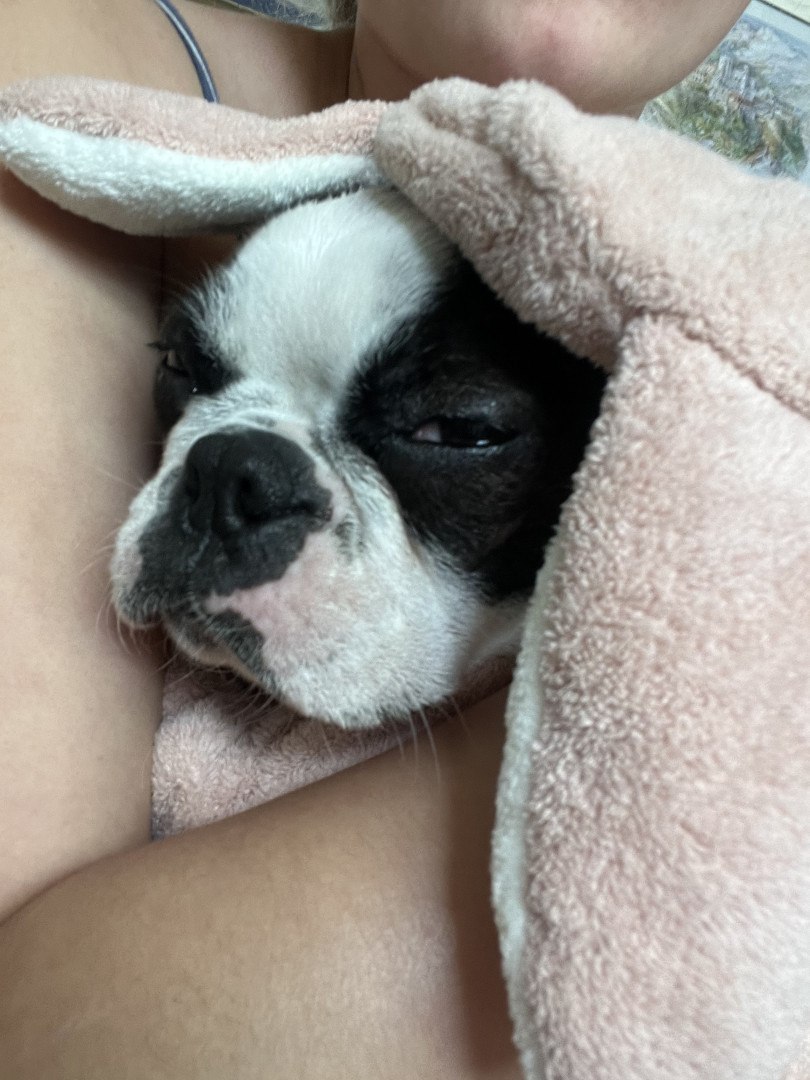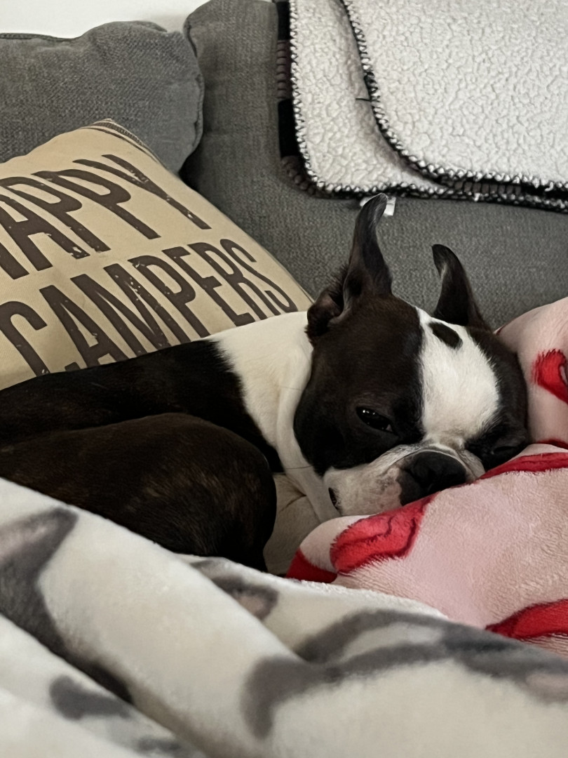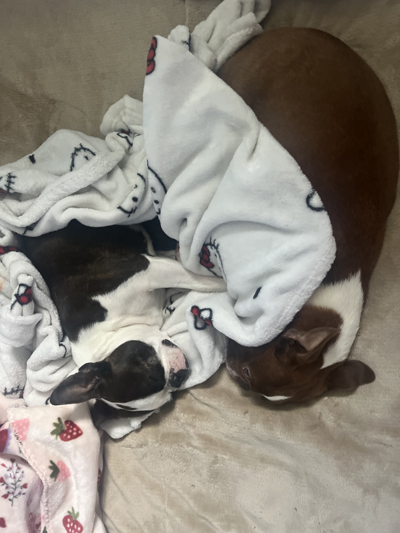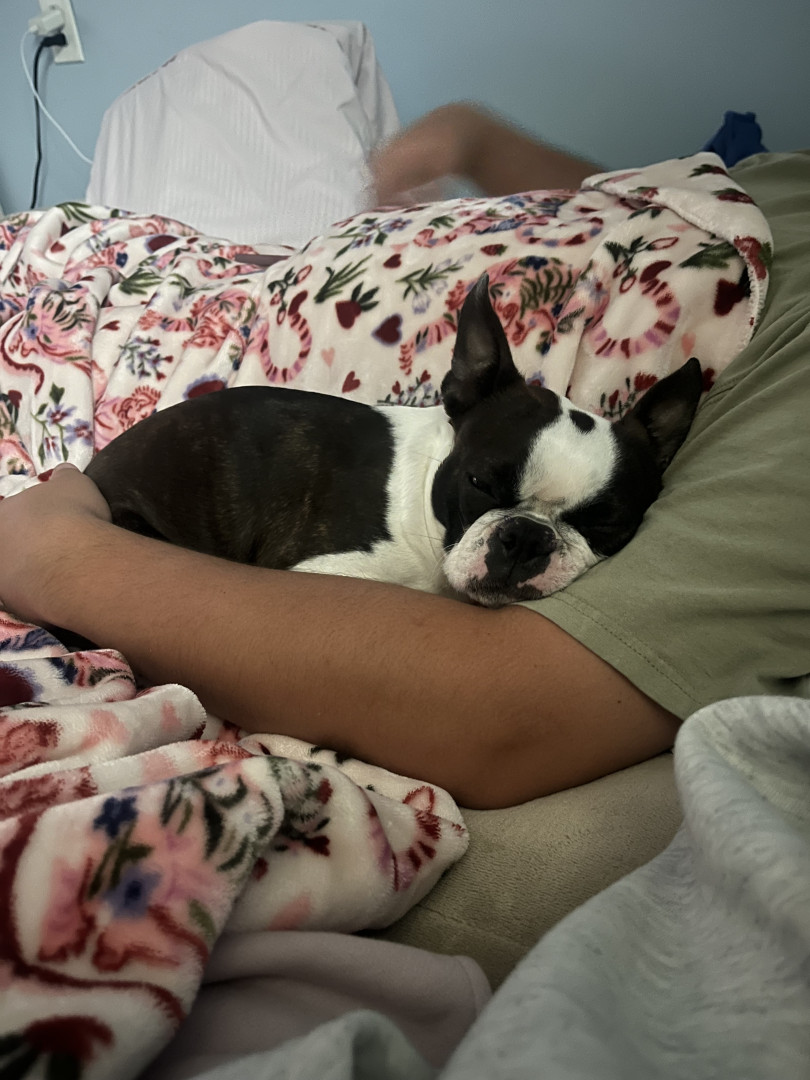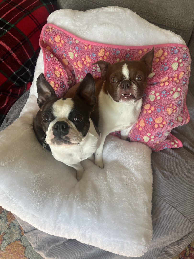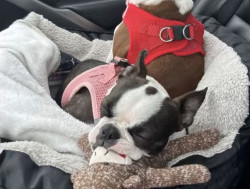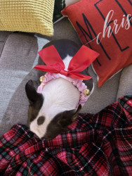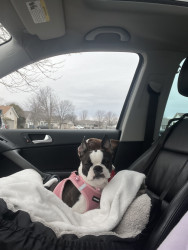 ruby is a deaf Boston terrier that loves to follow everyone like a shadow. Huge foodie, will do any trick for a treat. Biggest cuddler ever!