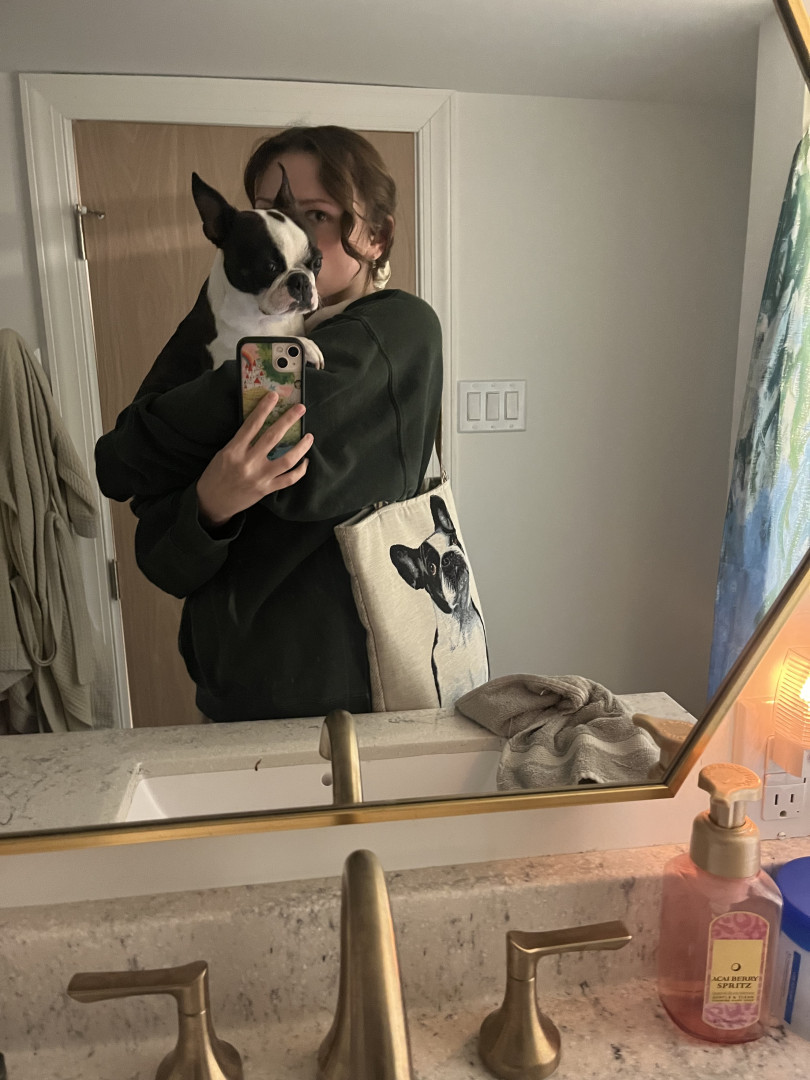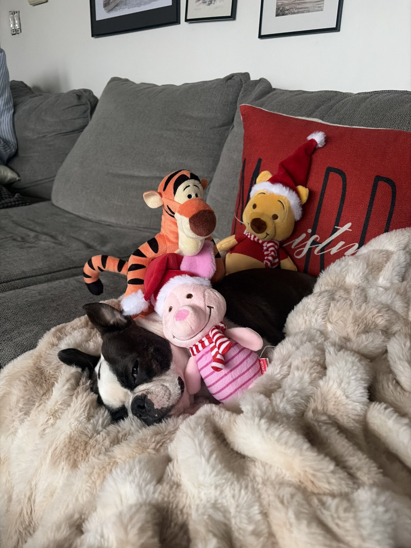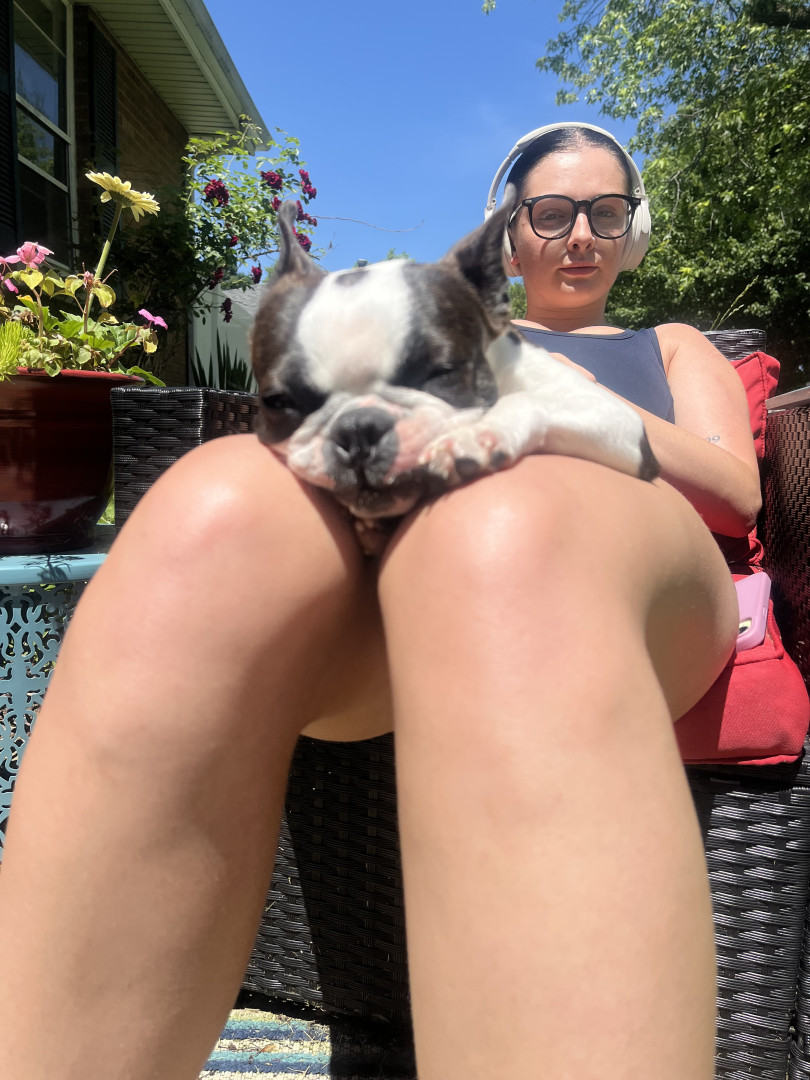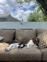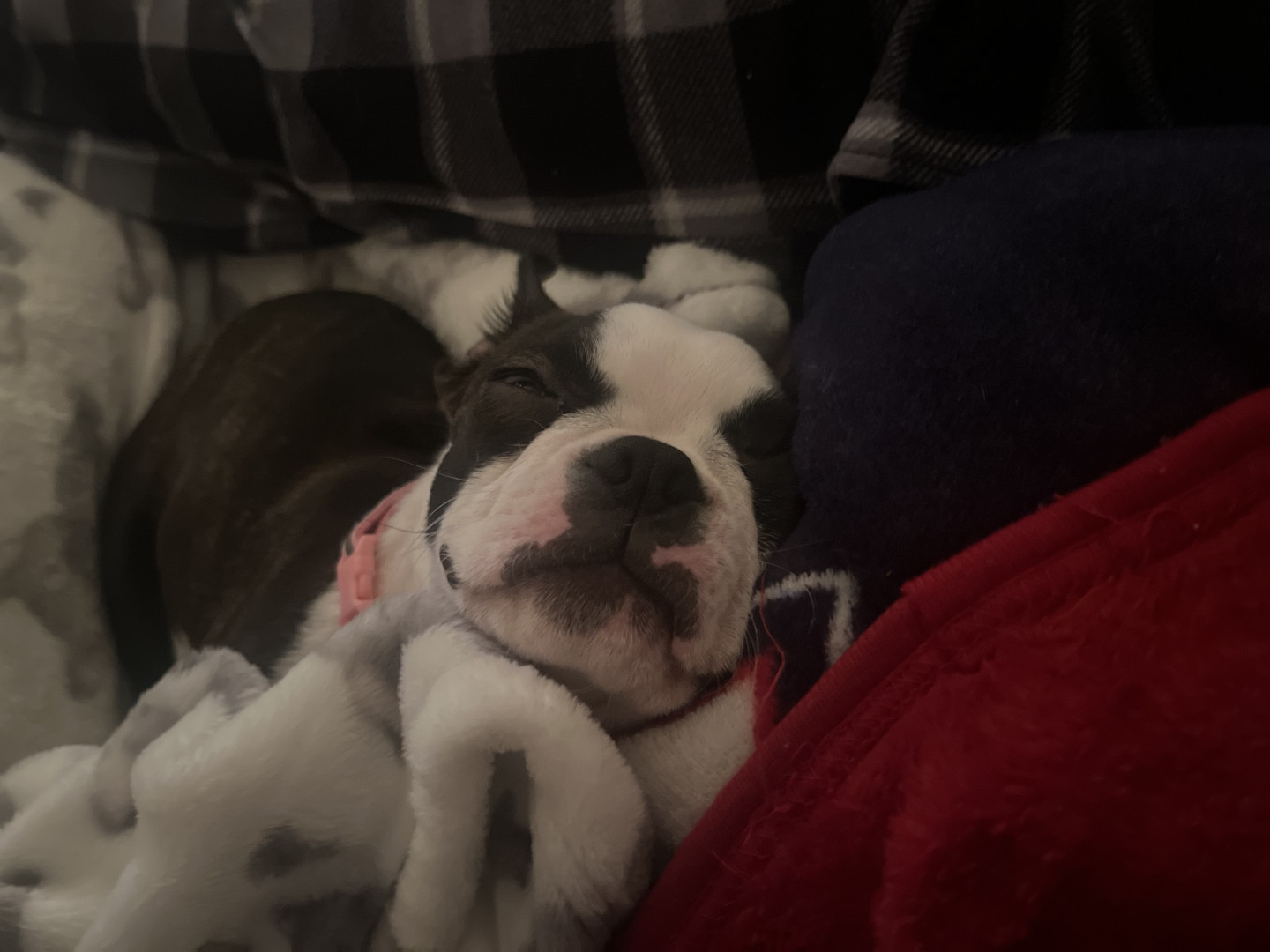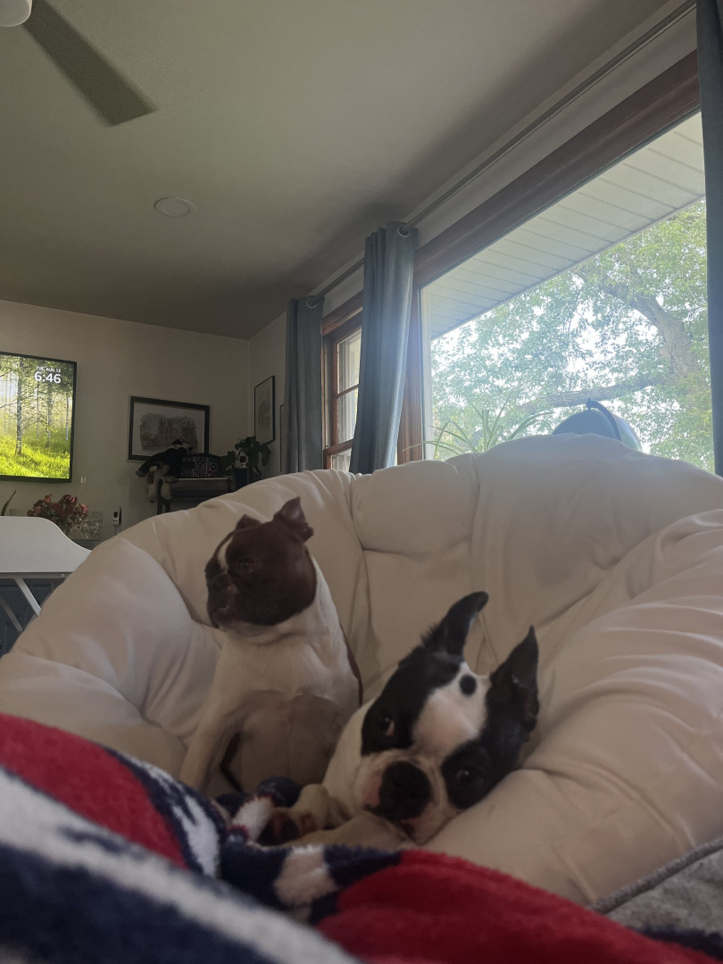 ruby is a deaf Boston terrier that loves to follow everyone like a shadow. Huge foodie, will do any trick for a treat. Biggest cuddler ever!