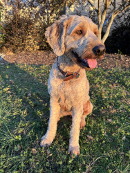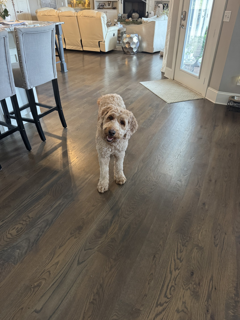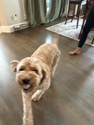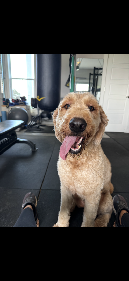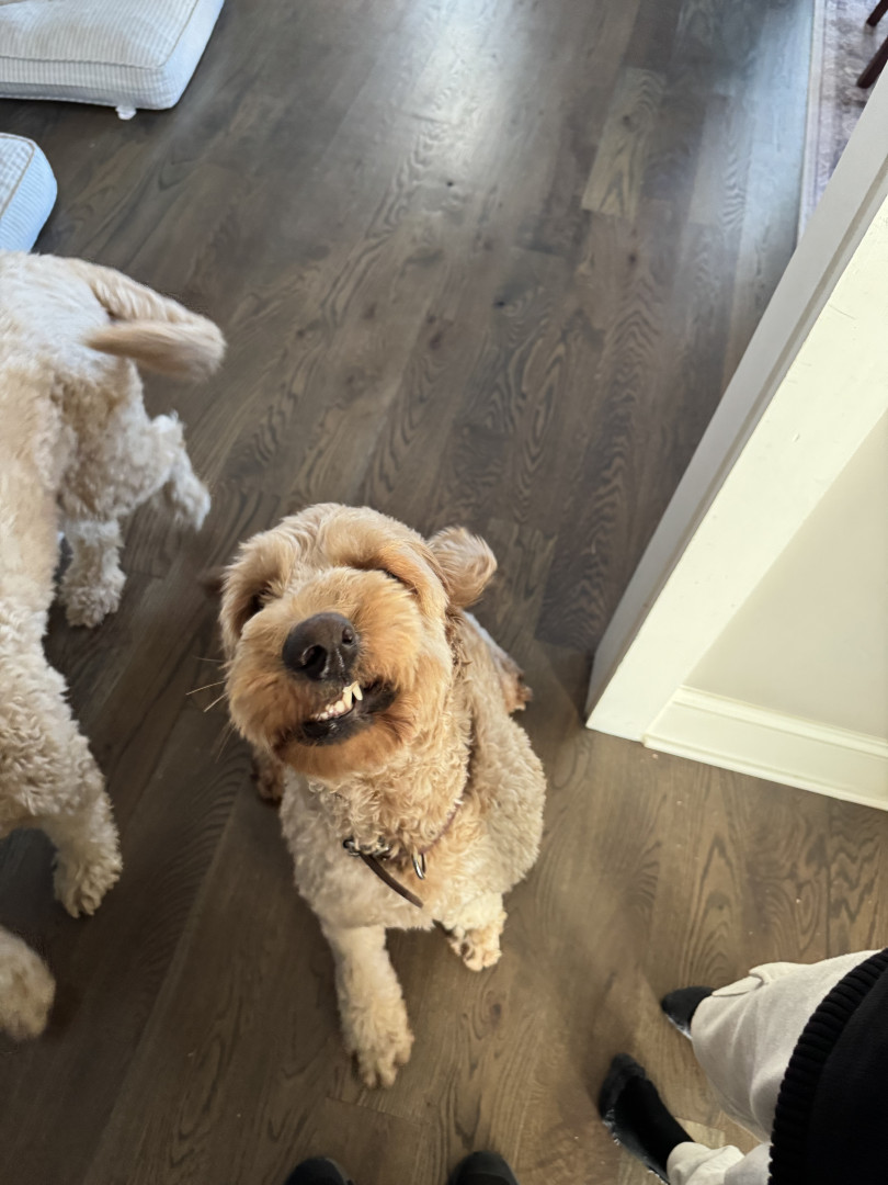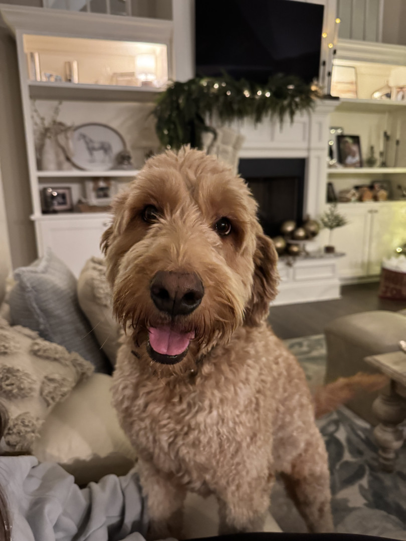 Ruby is a Goldendoodle with the sweetest demeanor! She loves to smile at us when we walk in because we are always smiling at her! The best!