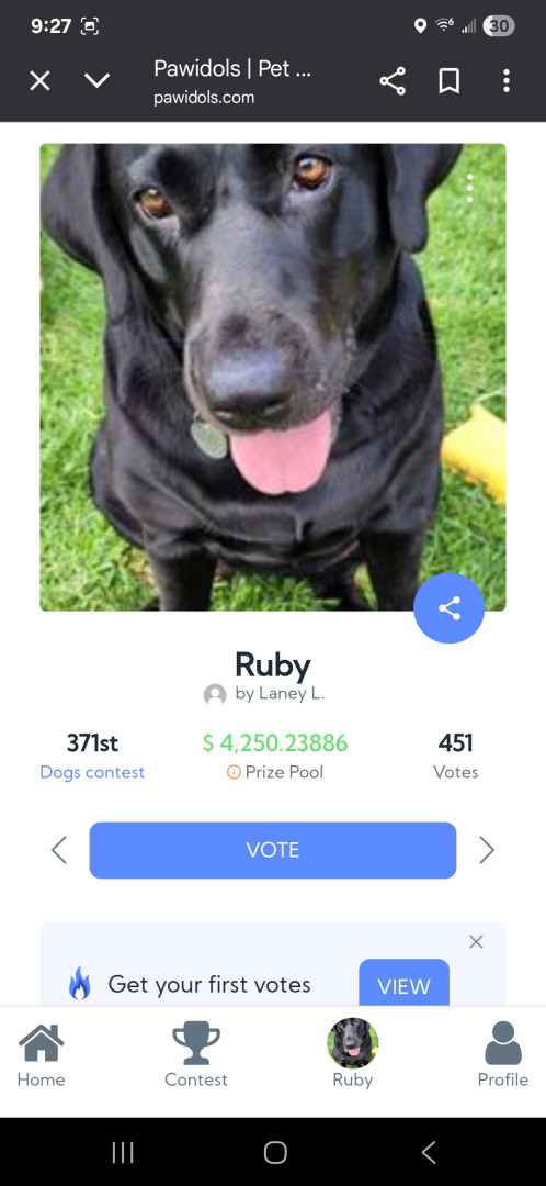 Vote for Ruby to be America's Favorite Pet with a tax-deductible donation supporting PAWS.org in their mission to help sick, injured, and orphaned animals.