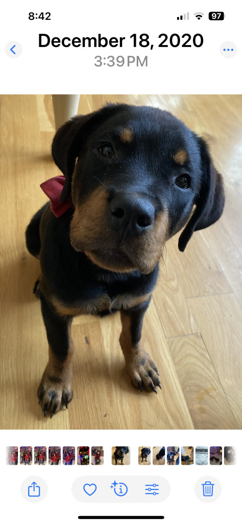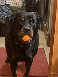 Learn MoreFavorite toy is her orange and blue striped ball. Ruby loves bacon treats and real bacon!!🥓