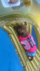 Learn MoreShe loves her chew toy but will literally find anything to get into to claim a treasure for her Lost and Found pile. I wouldn’t say she has a favorite treat. She more like only wants to eat them if the other dogs want them because she thinks she’s a tough guy. But her favorite food is chicken.