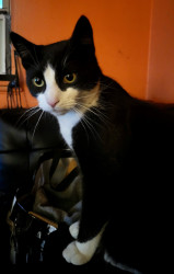 He's a cool cat, he's such a sweetheart, but he acts like a spoiled celebrity..Just recently I said to him, " "Just because your dressed better than us, doesn't make you better" !!! He's already dress to accept his award. I think he has his acceptance speech ready....