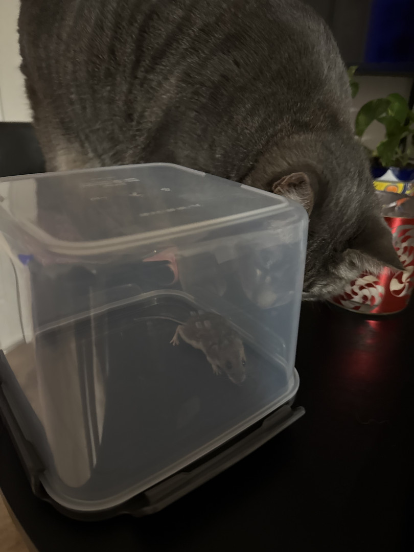 Learn MoreRue is obsessed with crinkle toys, wand feathers, and anything that skitters across the floor so she can pounce like a tiny tiger. Her favorite treat is her pink-can wet food, served with bottled water only… plus the occasional live mouse she proudly presents like a trophy.