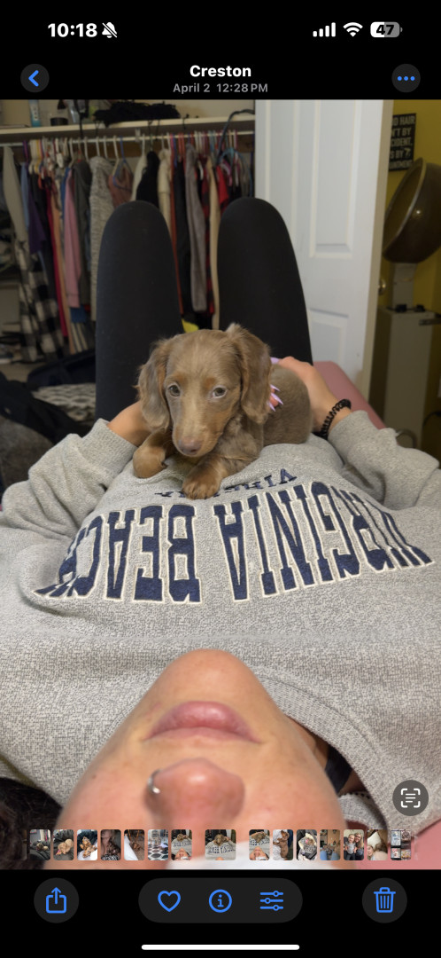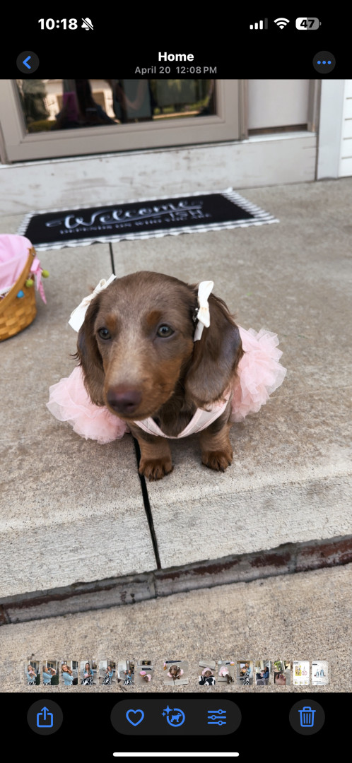 Rue is an 11-month-old long-haired mini dachshund with a sweet personality, a lil sass, and a huge love for her momma.