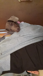 Learn MoreRue’s go-to treat is a peanut butter stuffed beef bone, and she gets a thrill out of dragging around toys twice the size of her. If it squeaks, she WILL fight it.