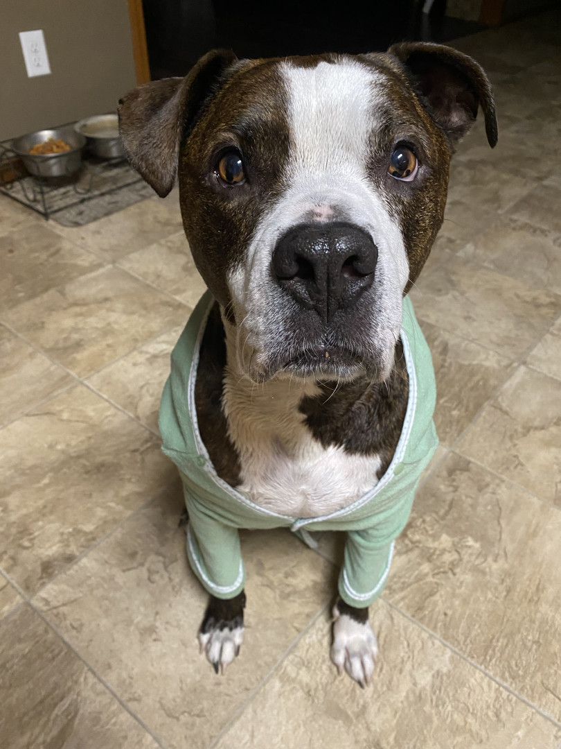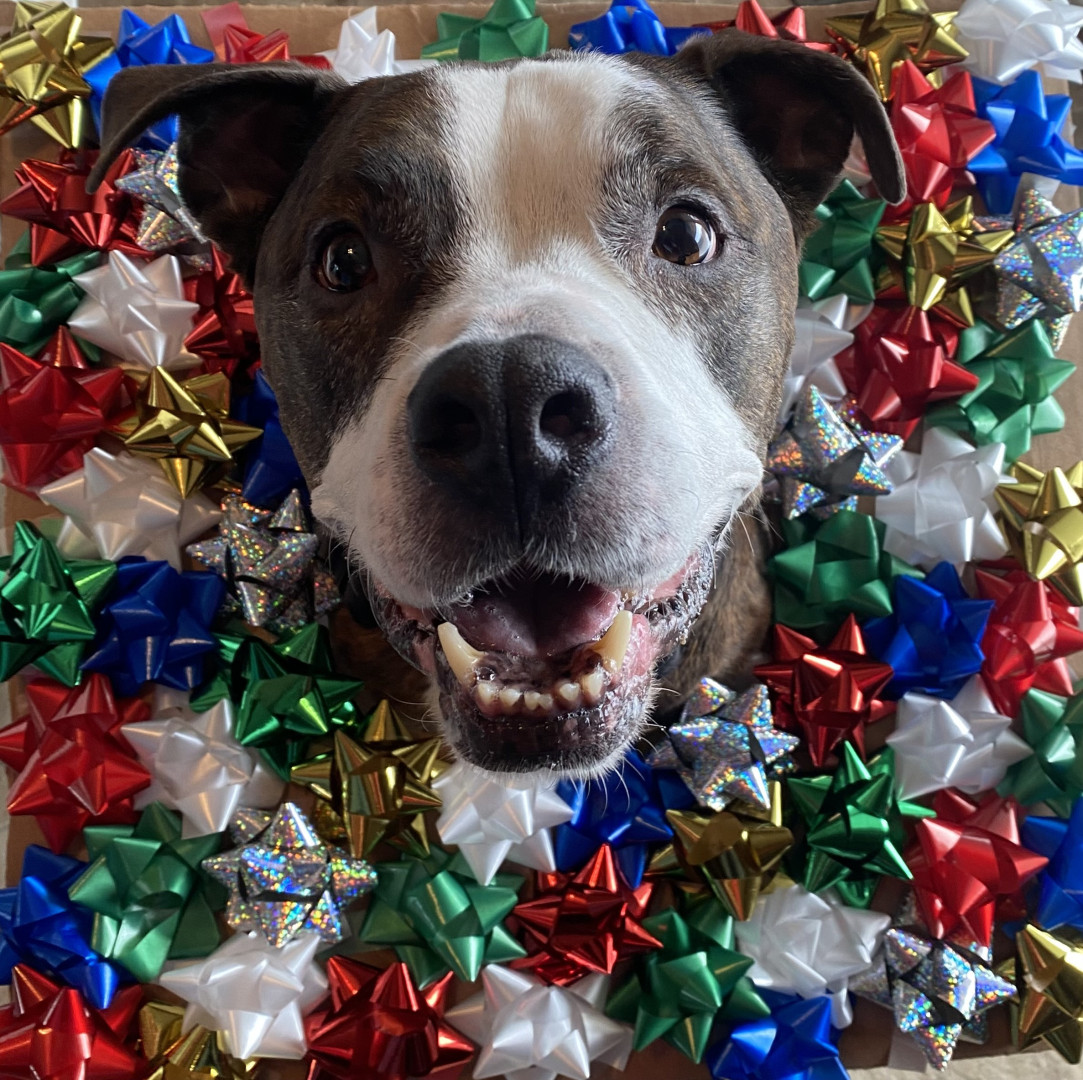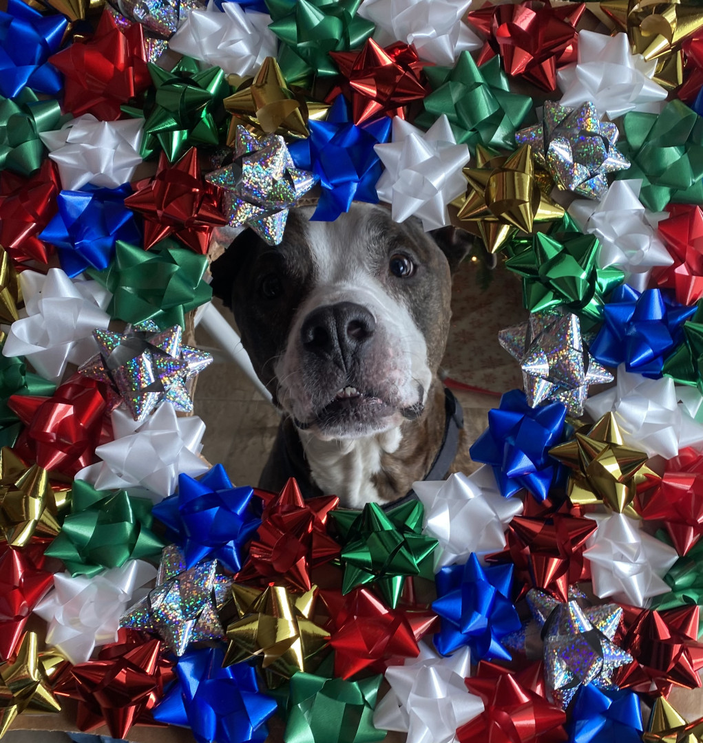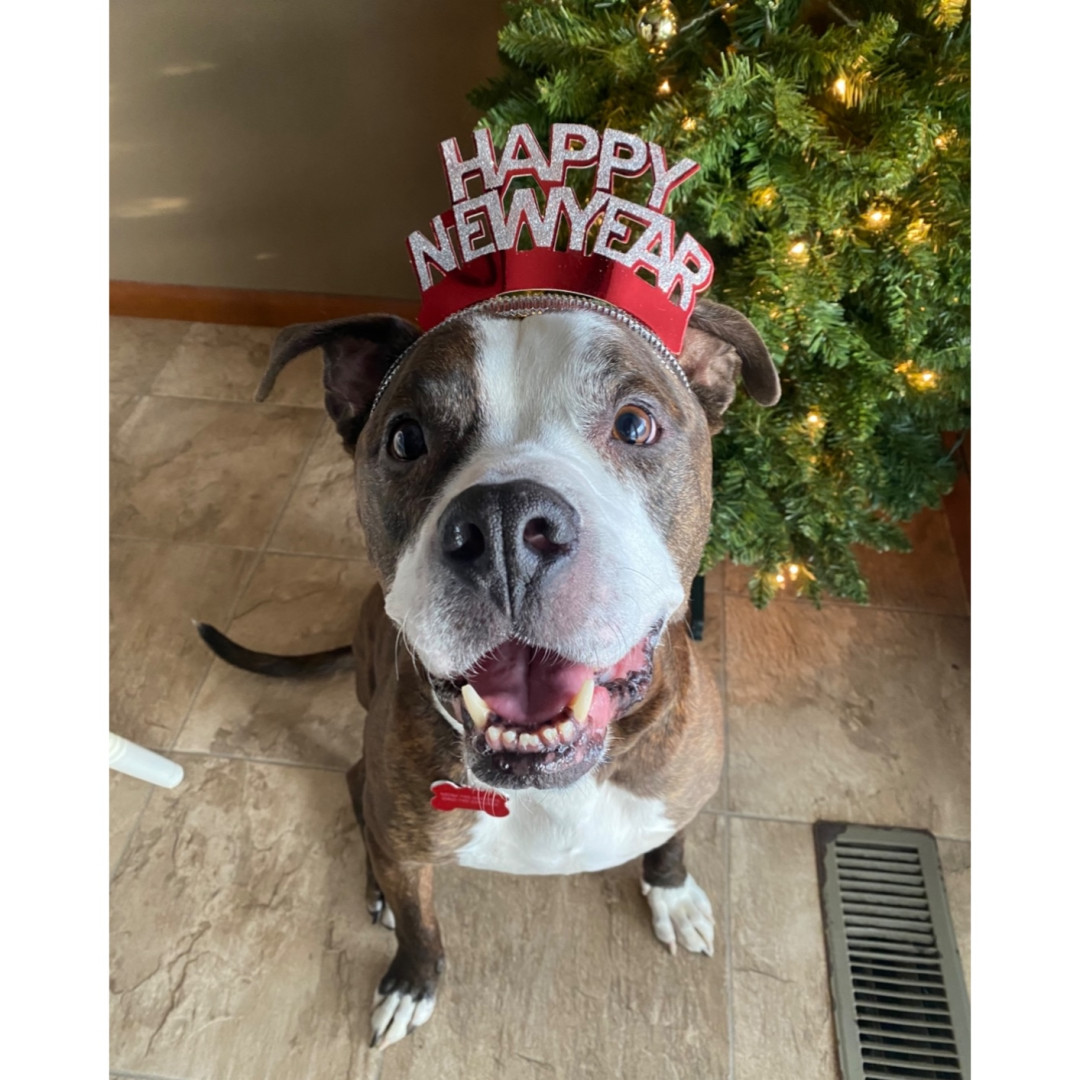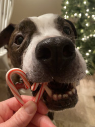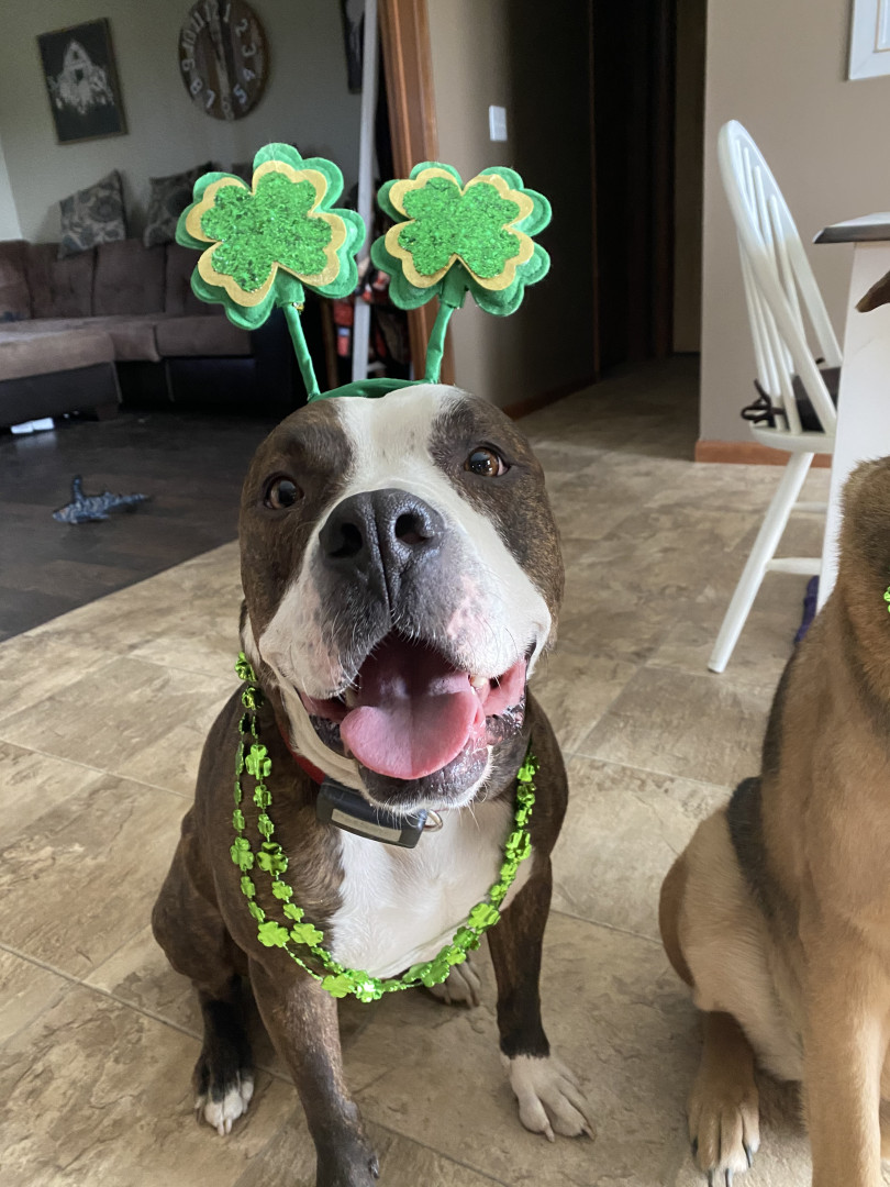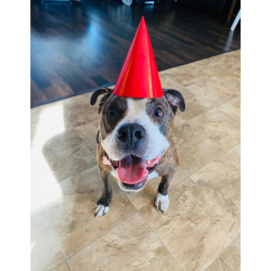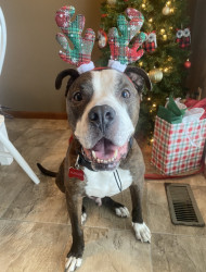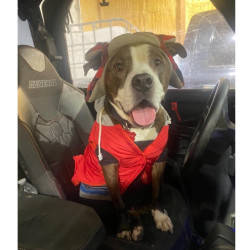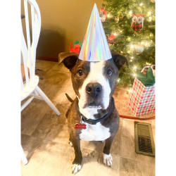 He loves to “ fist bump” and will put on any clothing /festive headband for a treat in exchange!