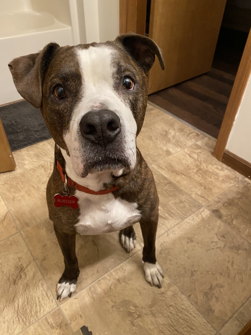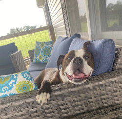 Rueger is the sweetest little guy you will ever meet! He is a very spoiled11 year old Pitbull! And loves his mom and dad the most!