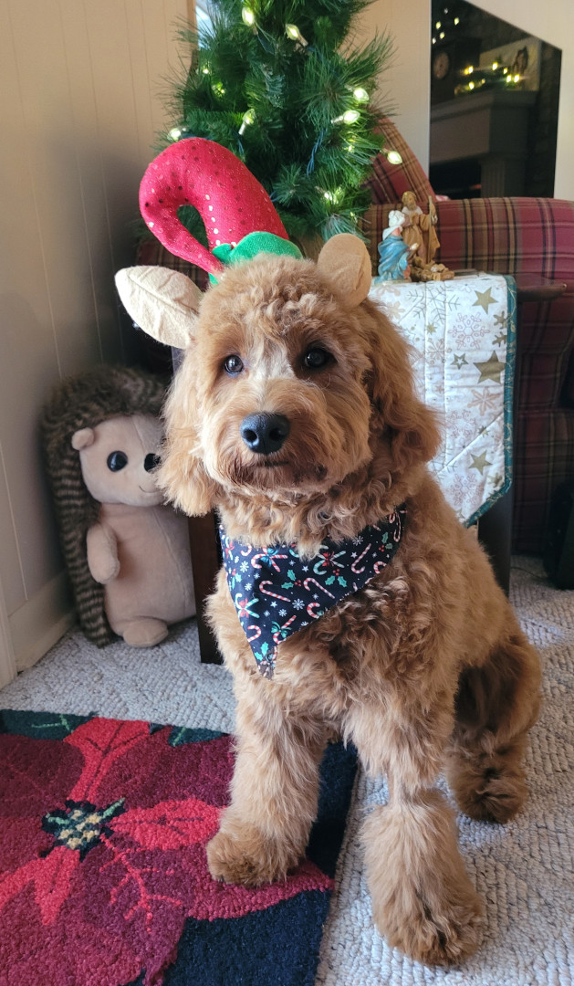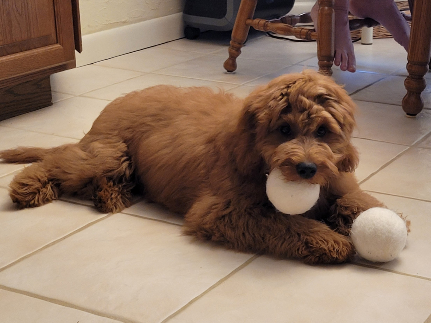 Rusty is a seven-month-old, 30 lb goldendoodle. He is excited about life and new experiences!